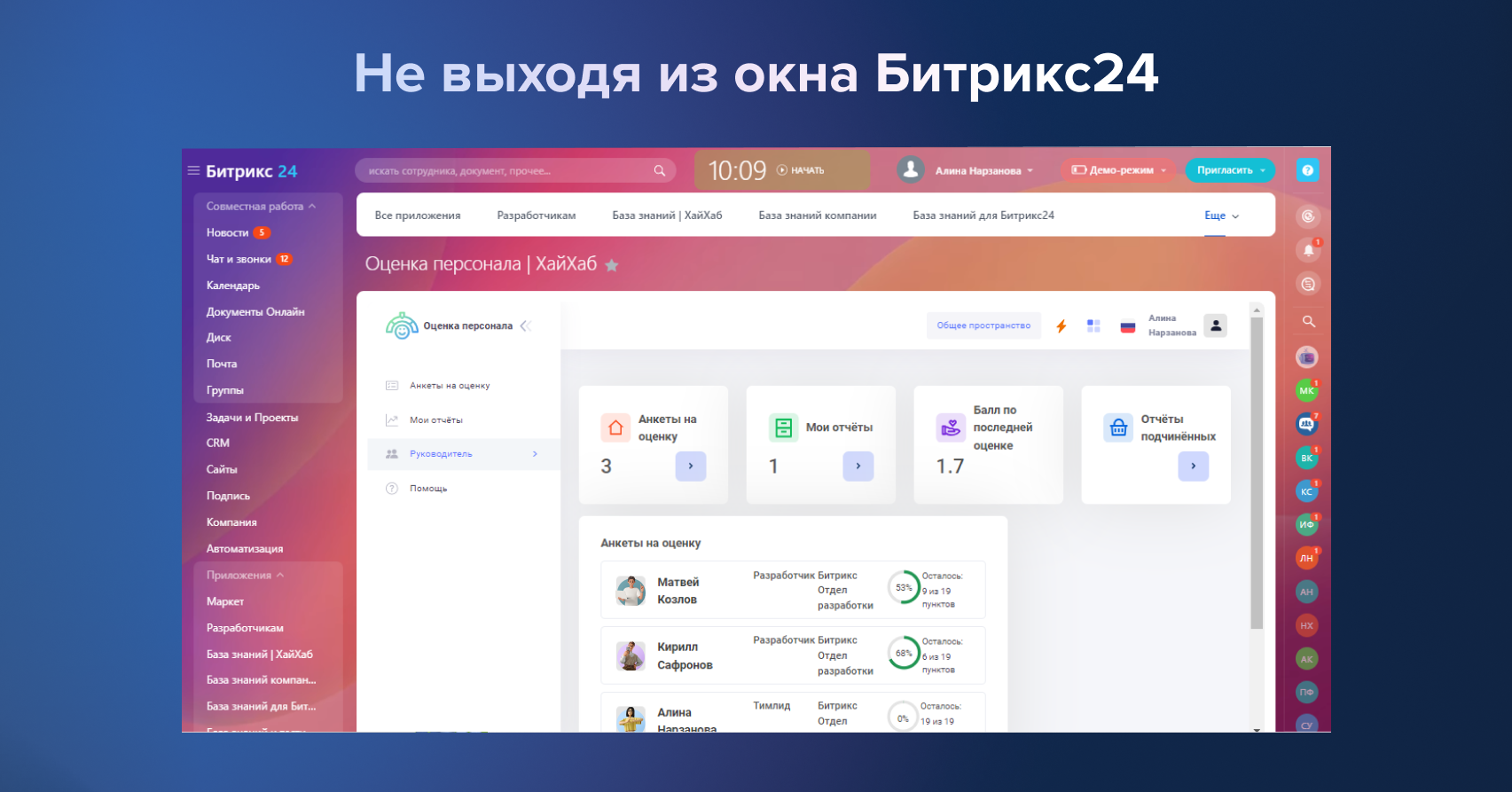 - Установите приложение «Оценка персонала» в ваш Битрикс24