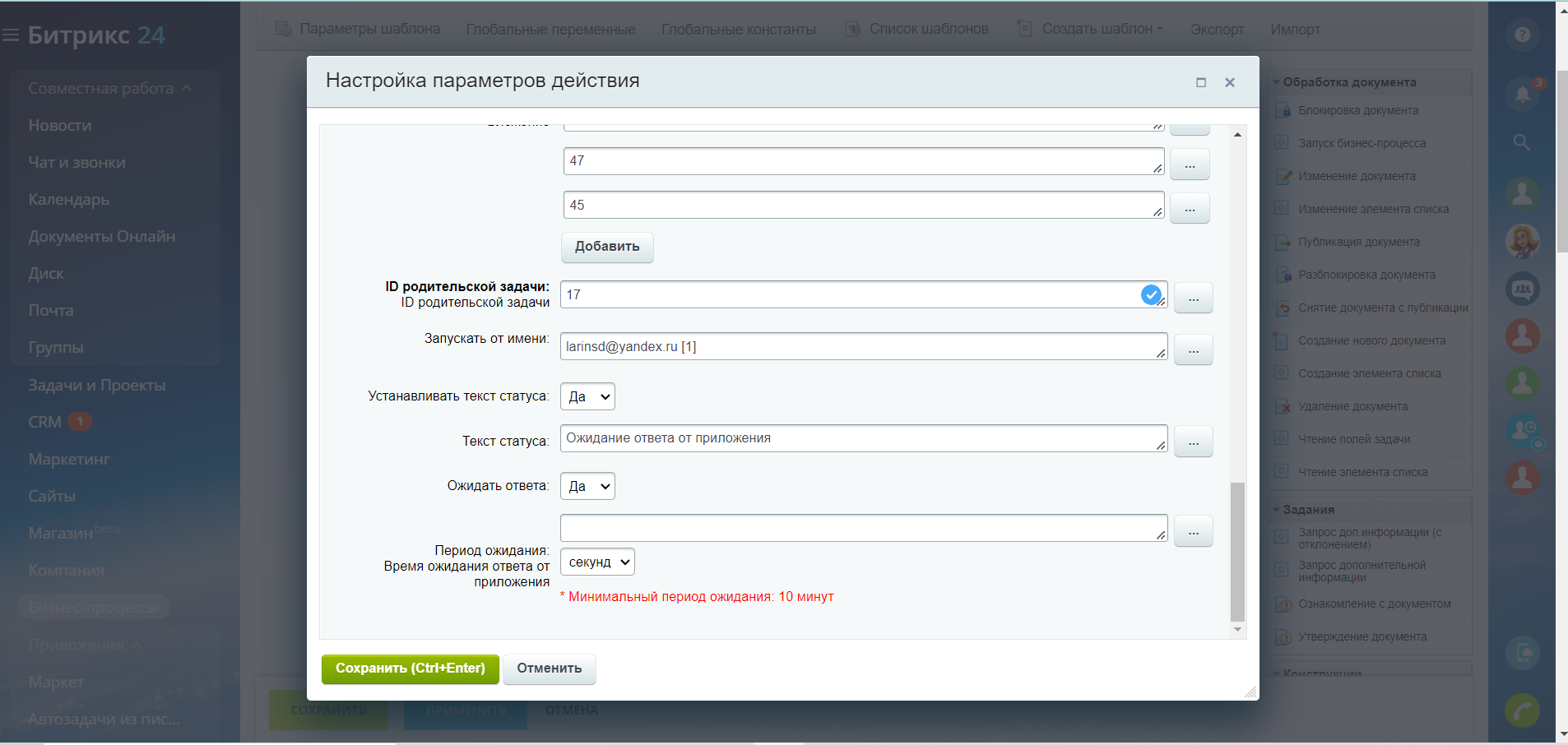 После создания «Бизнес-процесса»: