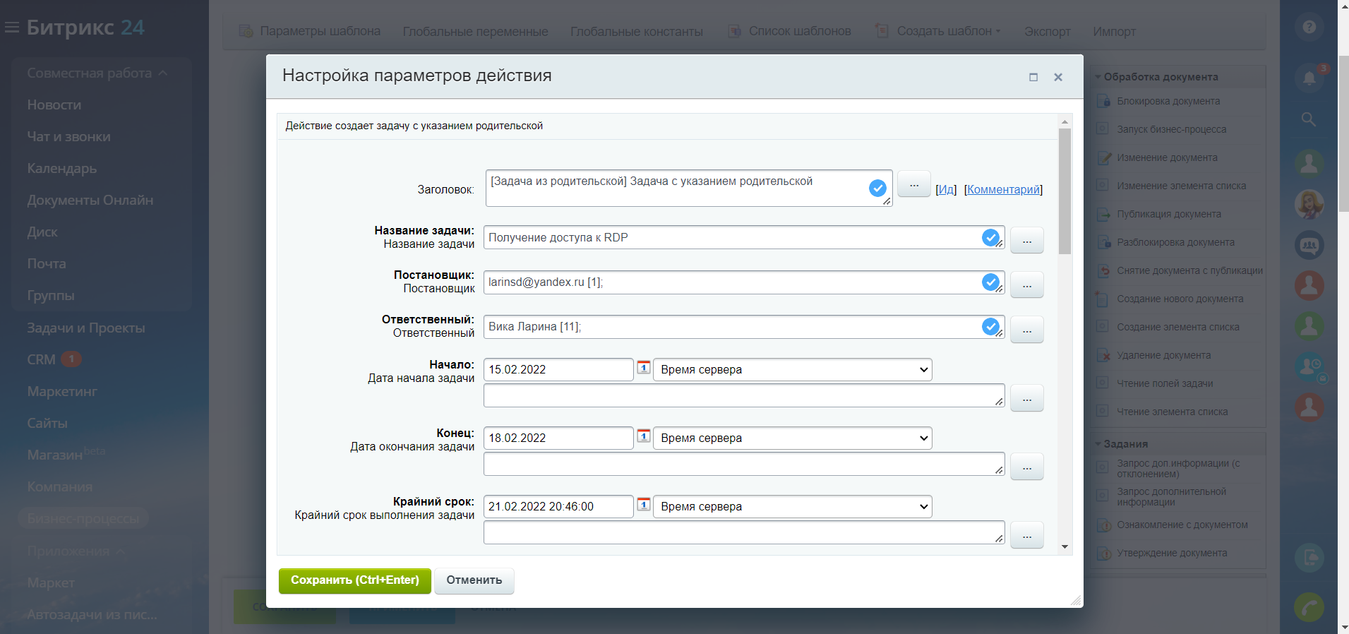 Приложение "Задача с указанием родительской" экономит время на создание задач вручную и облегчает процесс работы.