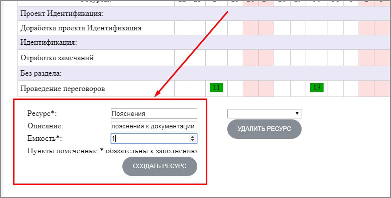 Для начала работы необходимо заполнить список ресурсов с разделением (или без) на разделы.