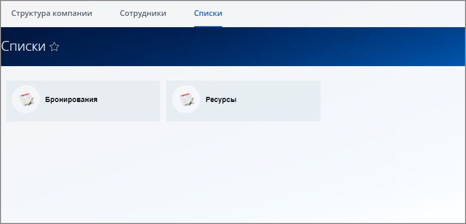 3. После установки в левом меню автоматически появляется пункт «Бронирование ресурсов», но он содержит только справочную информацию о работе приложения. Для работы со списками перейдите в раздел Сотрудники — Списки. Также работать с ресурсами и бронированиями можно в карточках сущностей CRM на вкладке «Ресурсы».