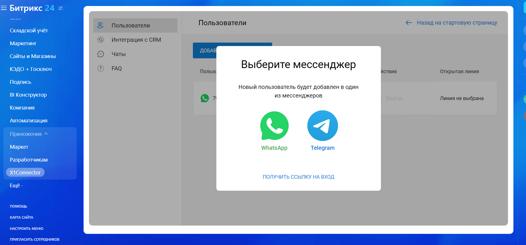 Основные функции x1connector призваны расширить ваше взаимодействие с WhatsApp и Telegram внутри Б24.