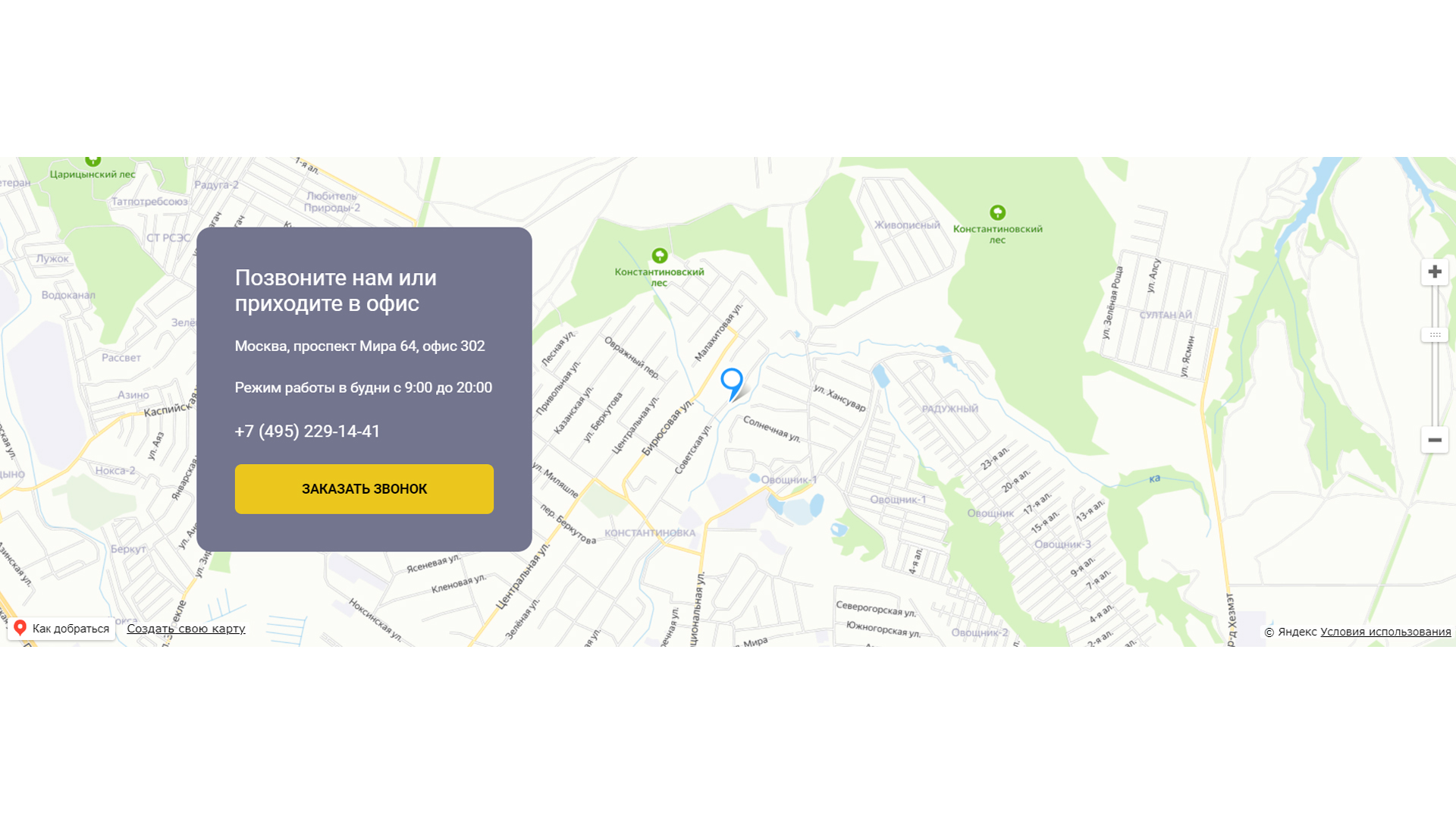 Блоки продуманы под реалии бизнеса и адаптированы для просмотра с любых устройств. Вы точно сможете выбрать подходящий вам блок, есть блоки для любого масштаба бизнеса, от 1 единственного офиса до сети филиалов по всей стране. Разместите блок, настройте дизайн, укажите метку и посетители сайта смогут с легкостью вас найти.