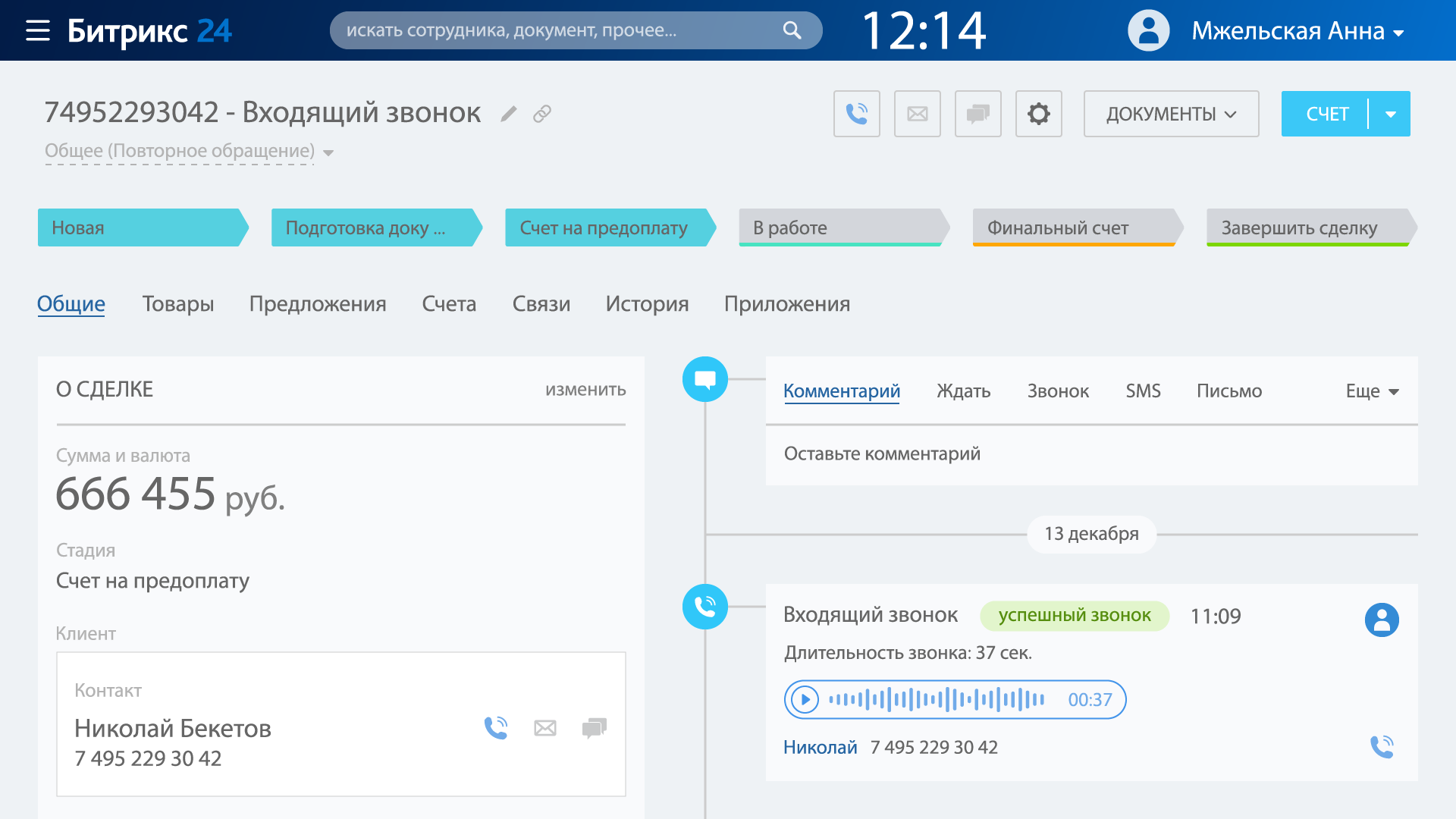 - Записи звонков привязываются к Лиду/Сделке/Компании/Контакту