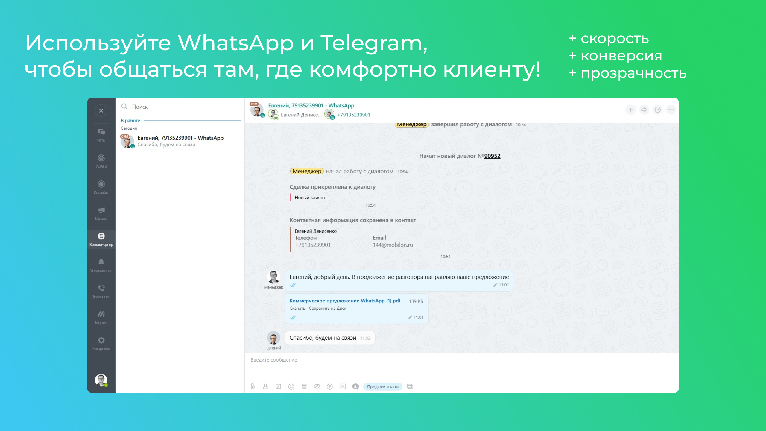 Официальное приложение для интеграции WhatsApp, WhatsApp Business API, Telegram и IP-телефонии от Мобилон.