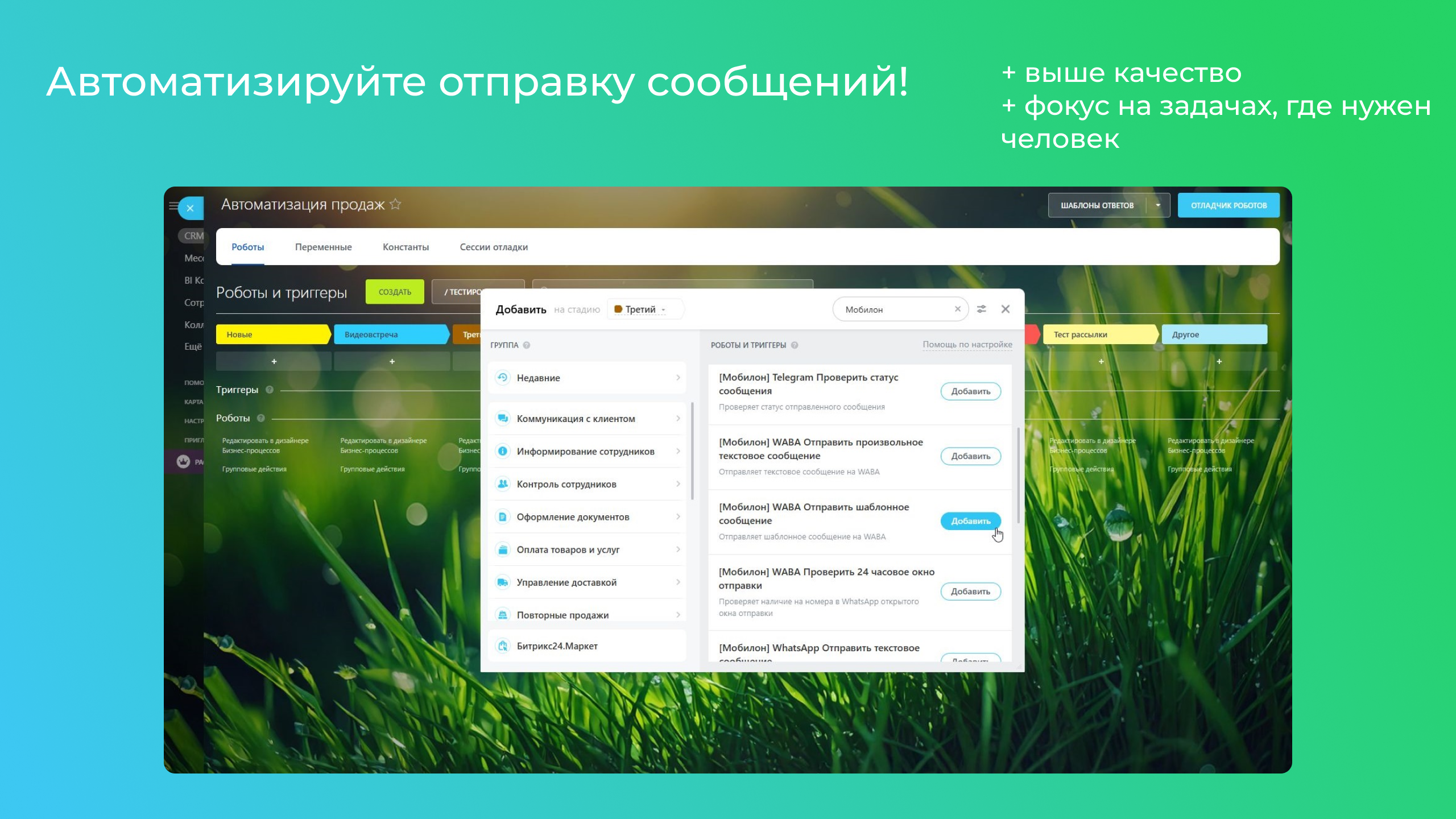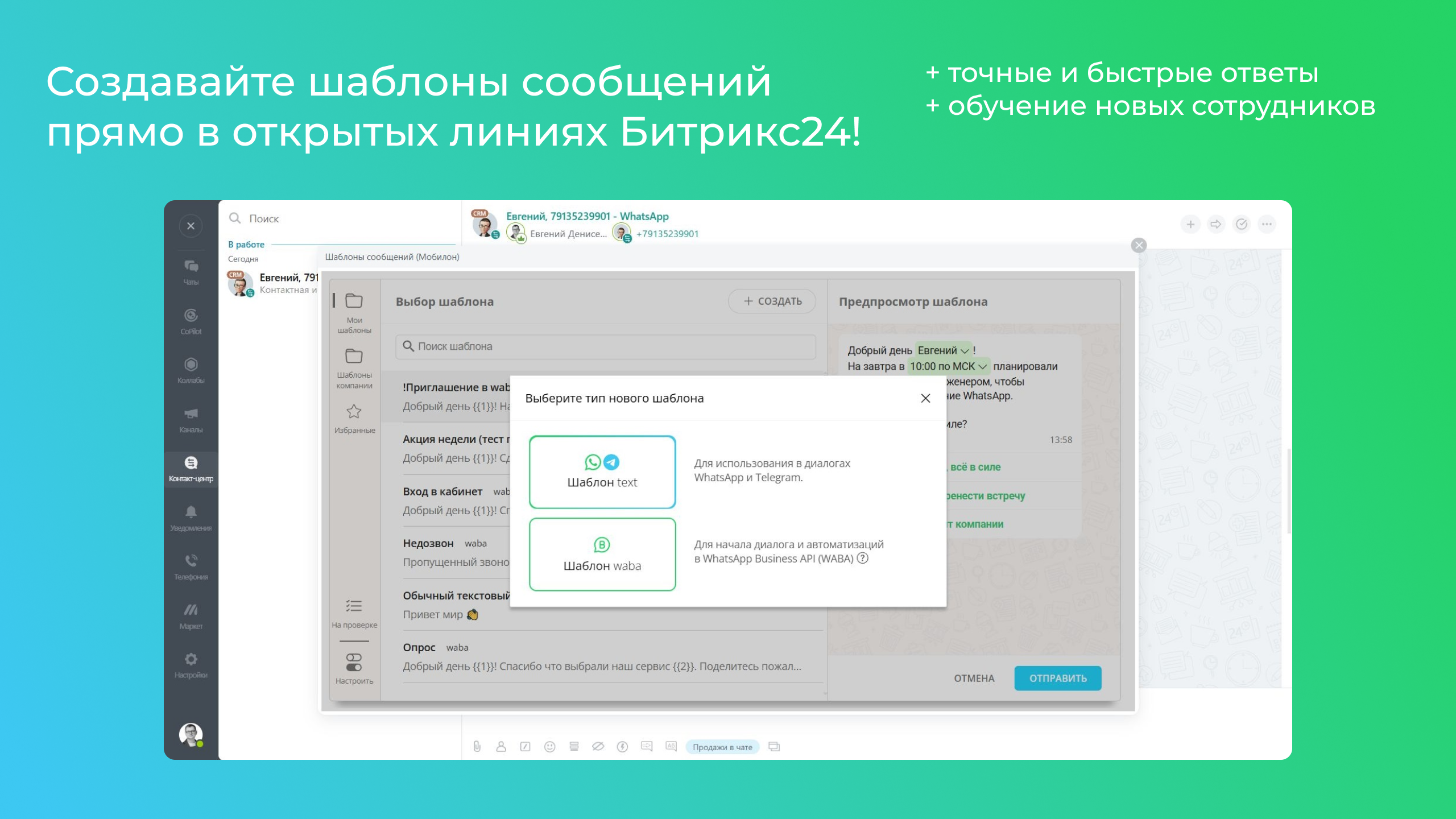 - Конструктор шаблонов сообщений встроенный в Открытые линии Битрикс24