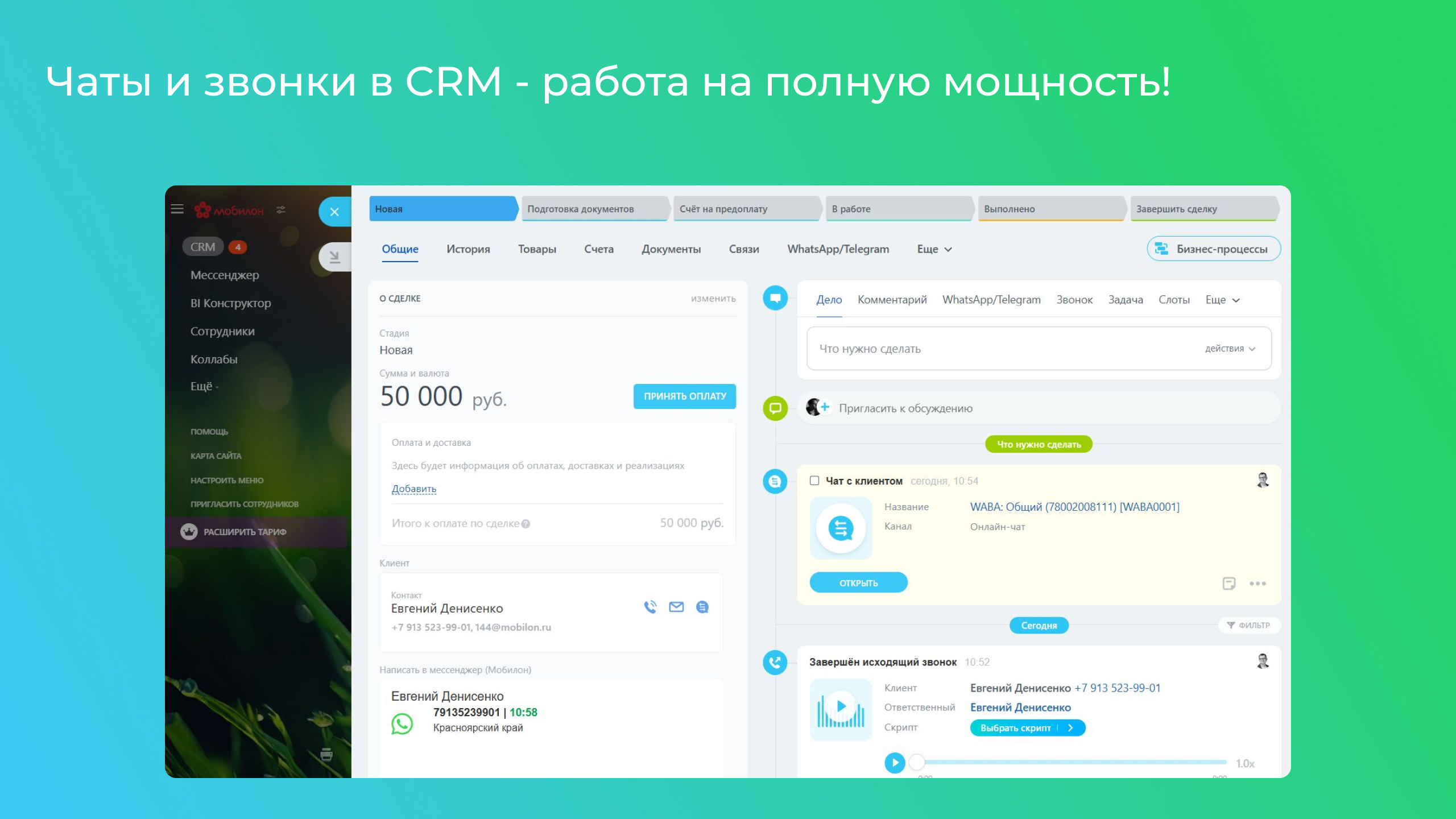 Мобилон - это интеграция WhatsApp, WhatsApp Business API, Telegram и IP-телефонии в одном приложении