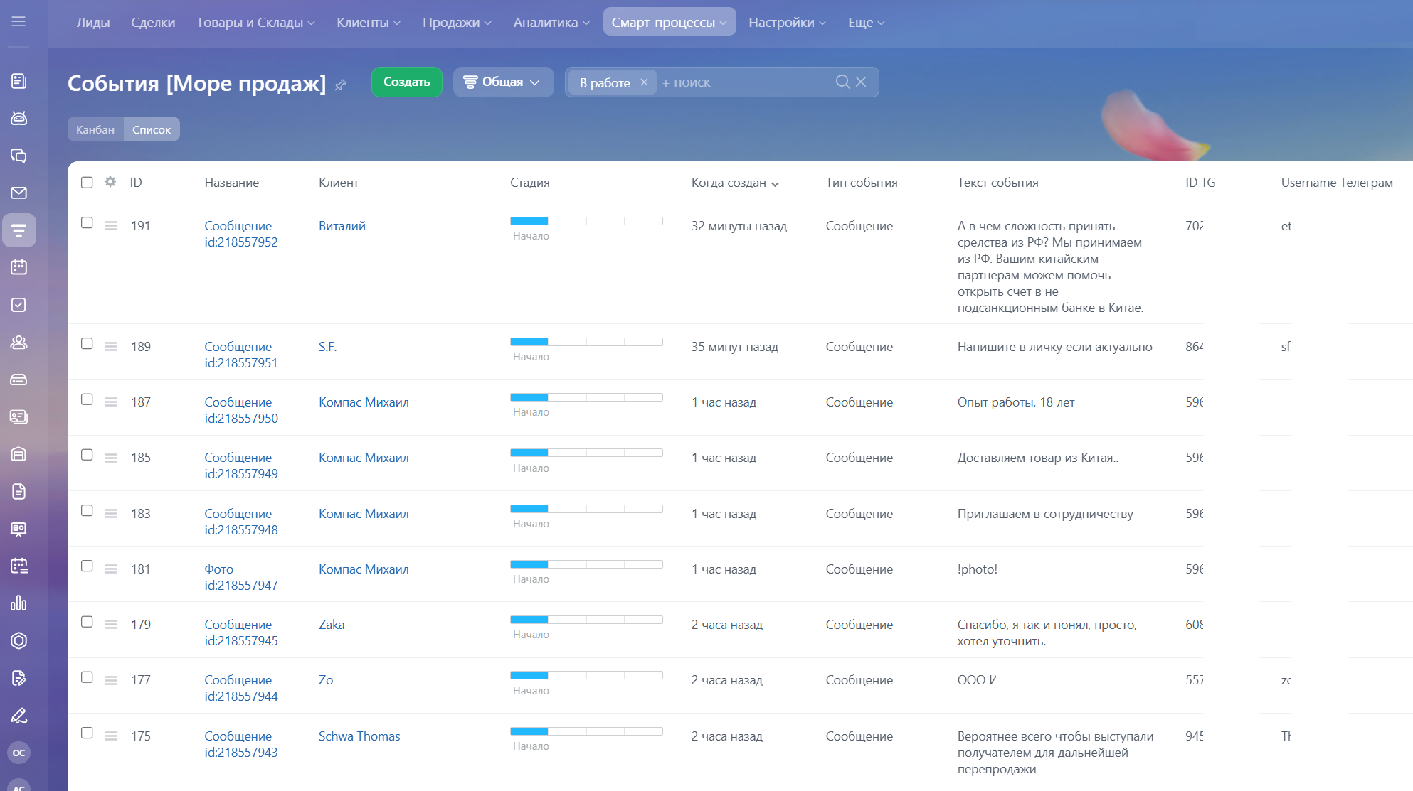 Подписчики Телеграм канала и их сообщения в Битрикс24