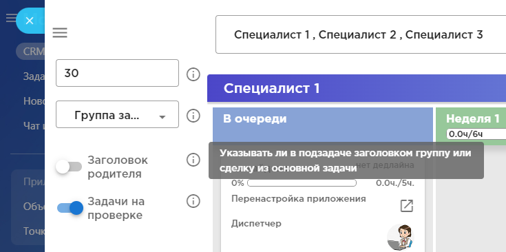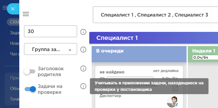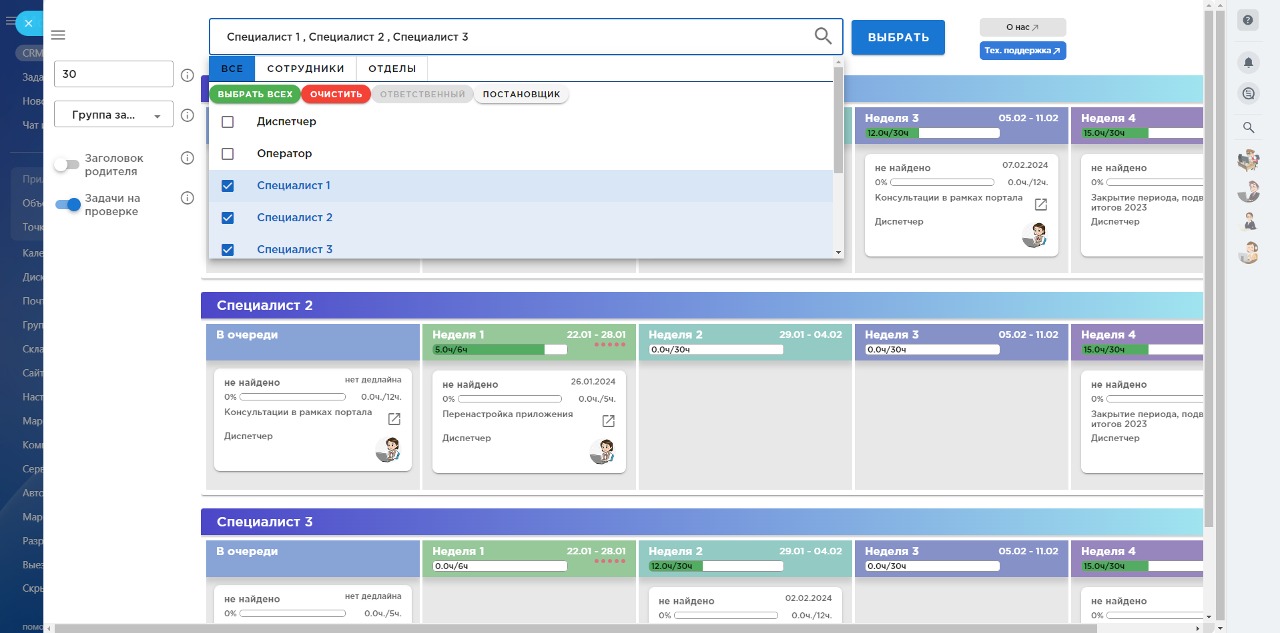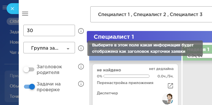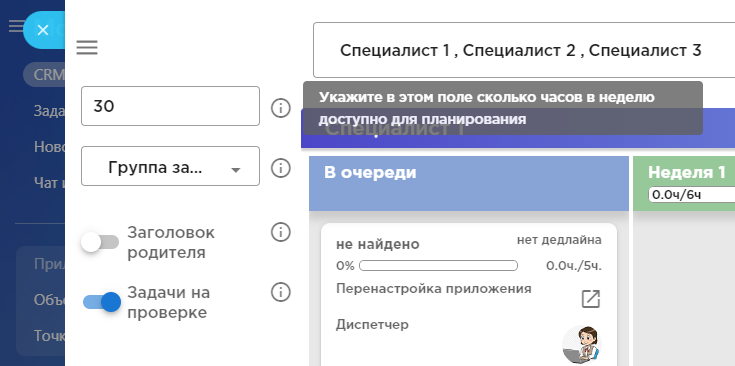 В настройках приложения есть возможность указать сколько времени в неделю можно бронировать у исполнителя (по-умолчанию при установке это значение равно 40 часам). Это позволит вам видеть, сколько времени у сотрудника свободно и сколько занято, а также оперативно реагировать на изменения, связанные с завершением или отменой задачи.