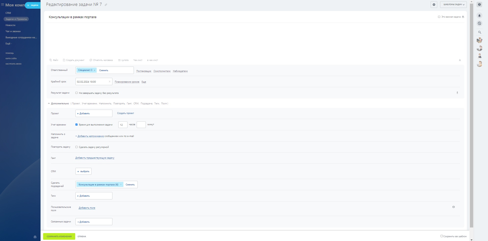 Приложение "Объем работ" интегрировано в задачи Битрикс24, что позволяет вам видеть загрузку исполнителя при установке крайнего срока задачи. Вы также можете легко перепланировать крайний срок задачи с помощью функции Drag and Drop, не покидая приложение.