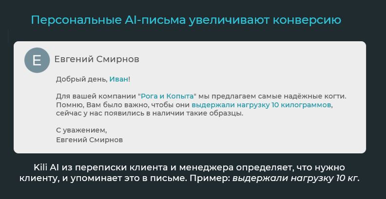 Анализ и синтез: Собирает всю историю общения с клиентом, выделяет суть, пишет персональные письма, контролирует качество работы менеджеров.