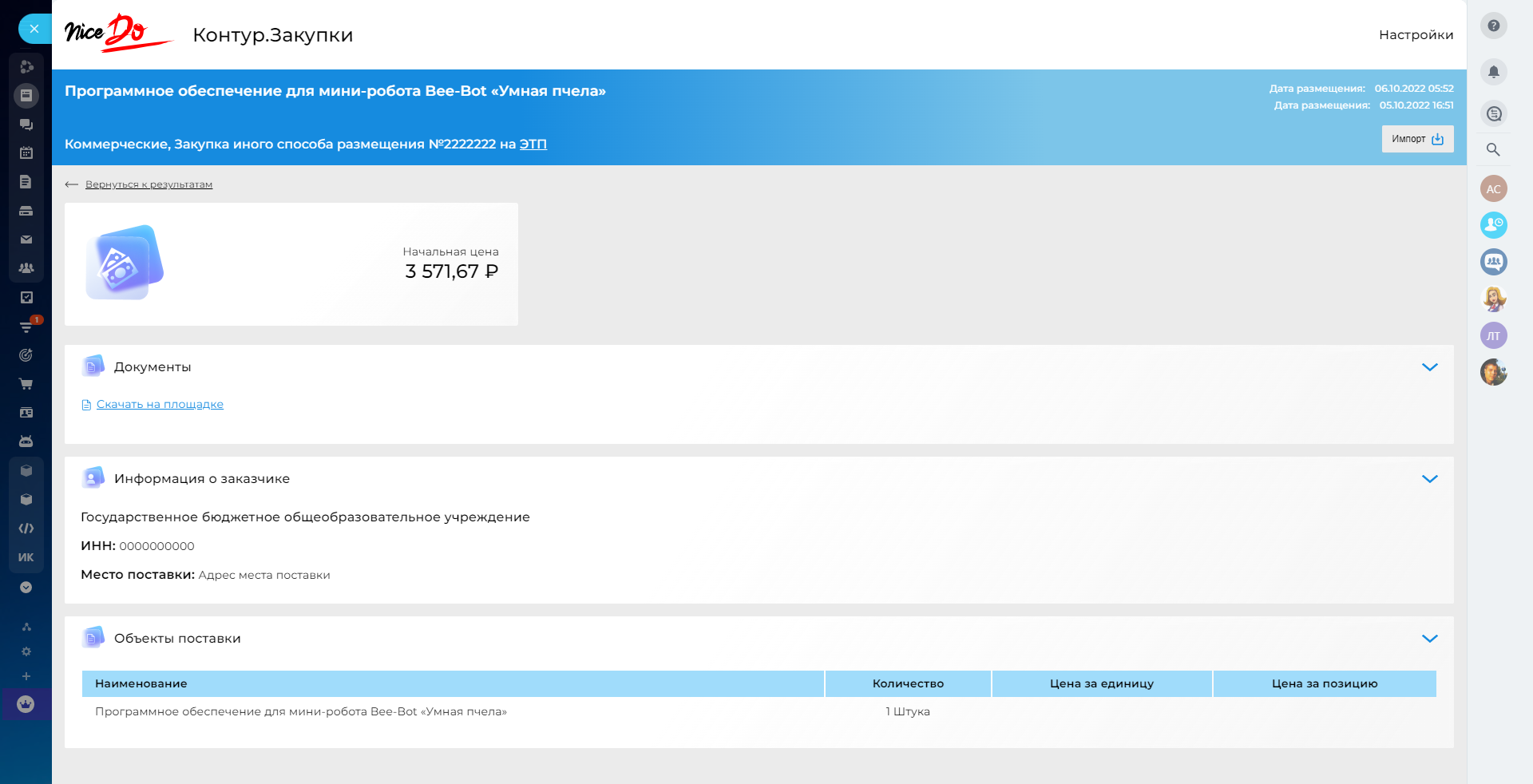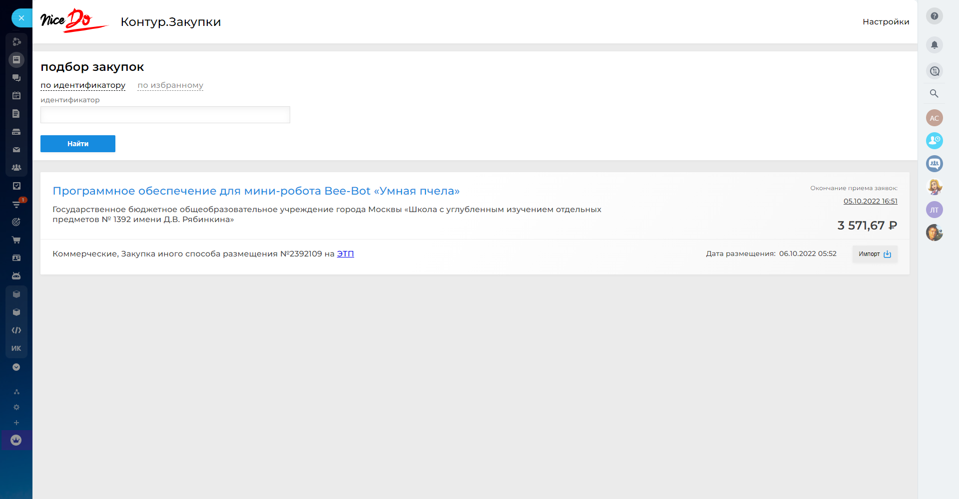 Команда NiceDo разработала приложение, которое позволяет легко перенести данные из сервиса в Битрикс24. Для использования приложения потребуется лицензия сервиса «Контур.Закупки».