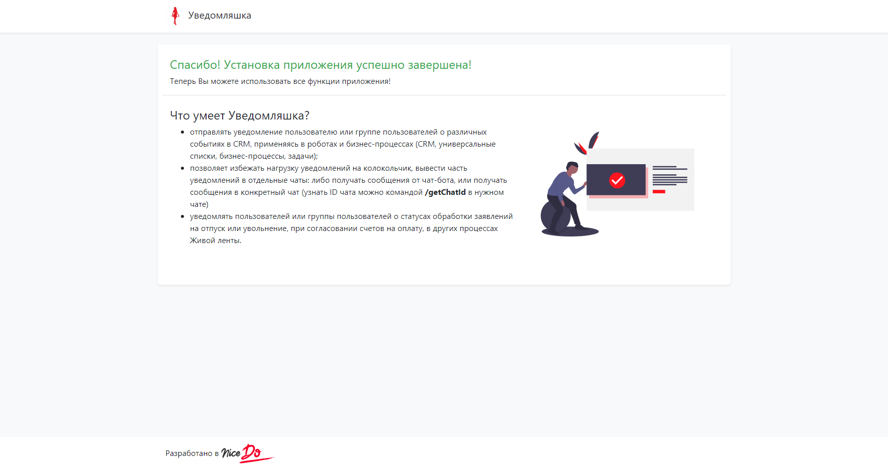 Для структурирования работы с уведомлениями всевозможного характера, повышения оперативности работы сотрудников, возможности наглядного разделения диалогов и сообщений на различные темы друг от друга, в Битрикс24 мы разработали чат-бот "Уведомляшка".