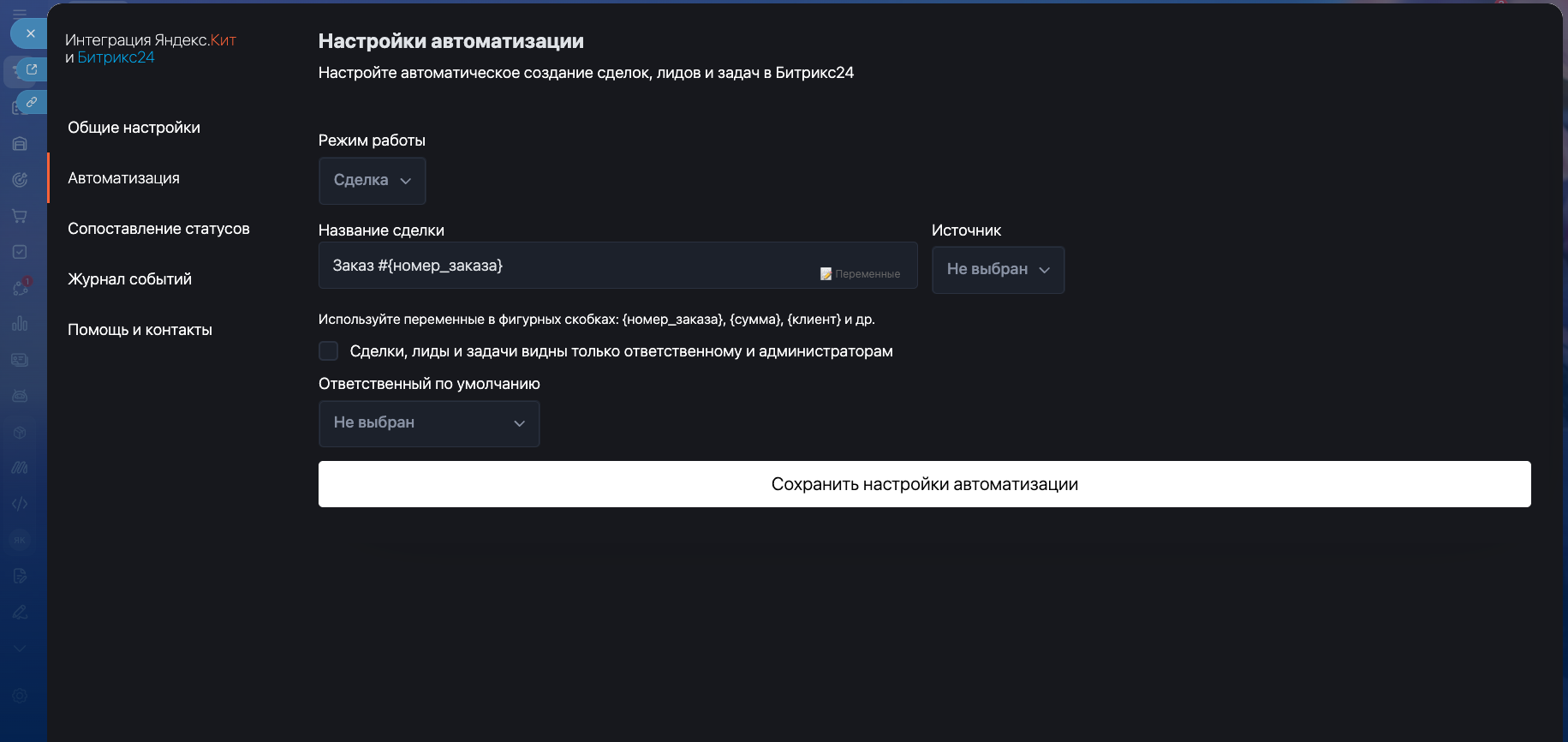 Приложение позволяет автоматически синхронизировать данные между Яндекс.KIT и Битрикс24.