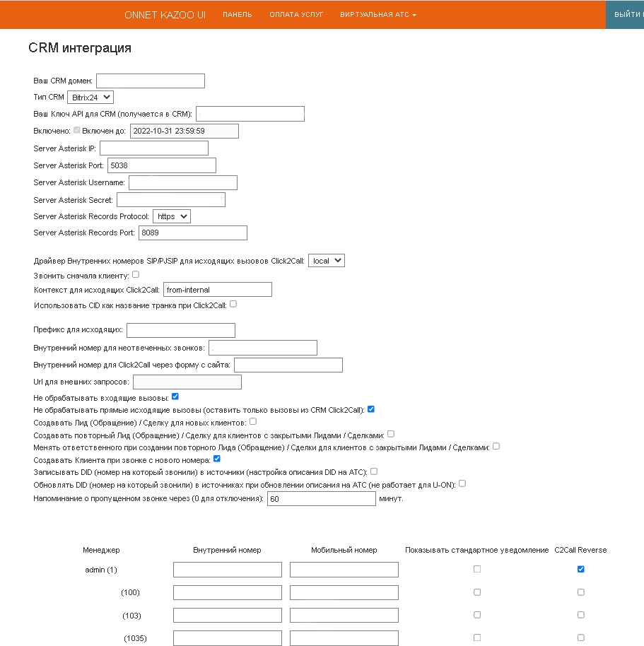 Интеграция ОнНет Кондуктор позволяет реализовать интеграцию любого Asterisk от 11 версии с CRM системами.