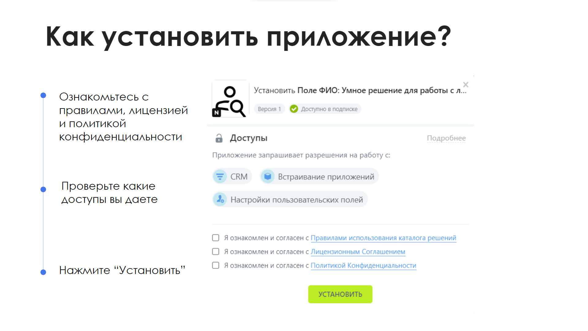полный доступ: чтение, добавление, изменение и удаление лидов, контактов, компаний, сделок, счетов, коммерческих предложений, дел, пользовательских полей и т.д.