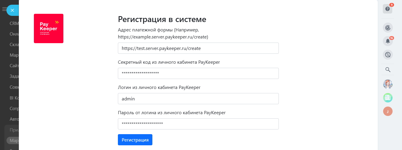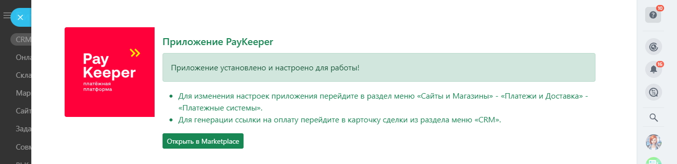 Приложение PayKeeper позволяет осуществлять онлайн-платежи по счетам и сделкам интернет-магазина в Битрикс24 через платёжную платформу PayKeeper.