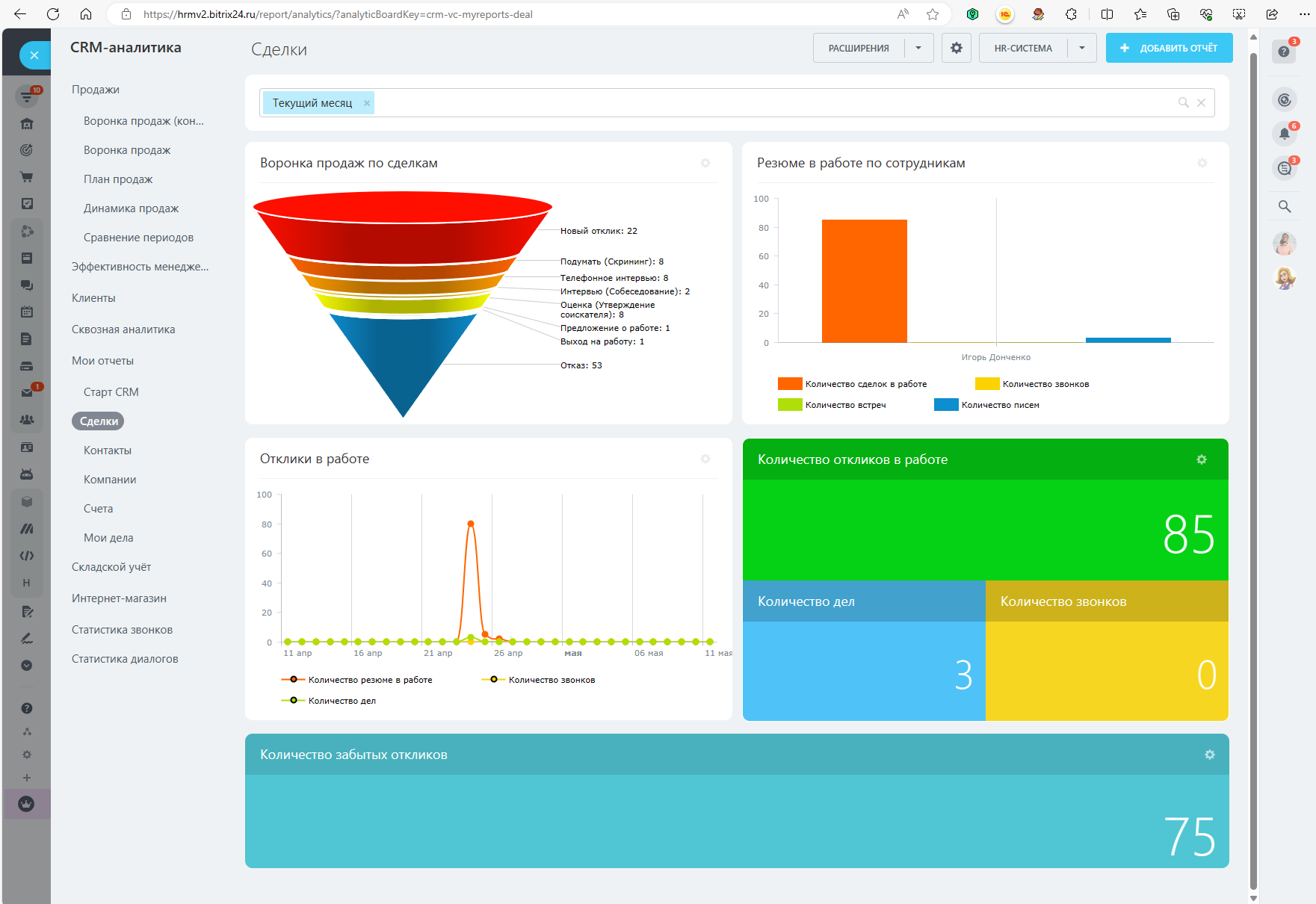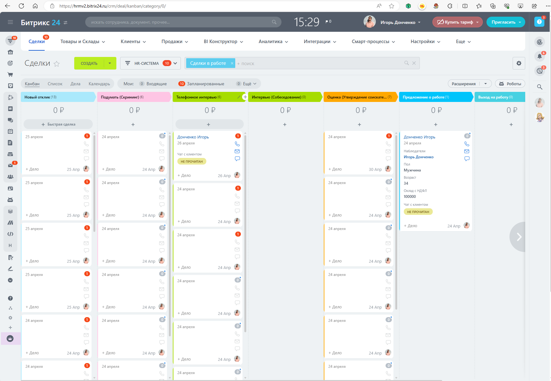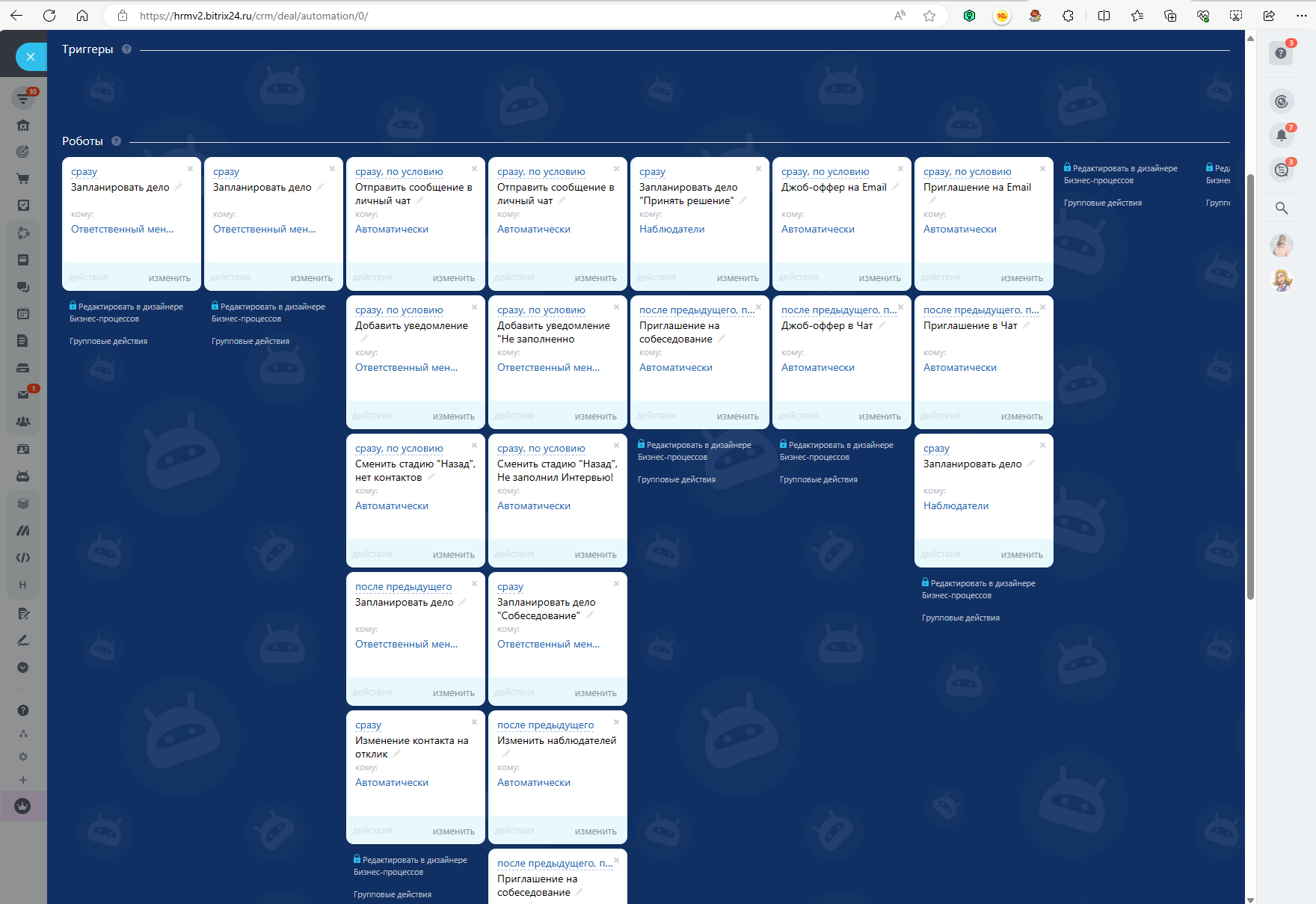 - Воронка «HR-система» в сделках - с предустановленными полями, стадиями и автоматизацией.