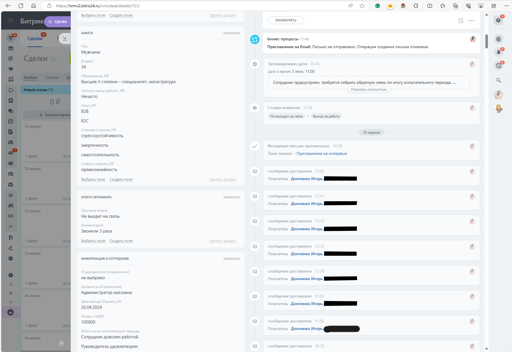 - Автоматизация в HRM-системе Кандидат сам отказался