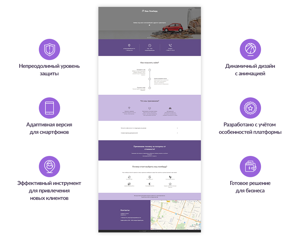 Современный привлекательный сайт ломбарда в формате лэндинга.