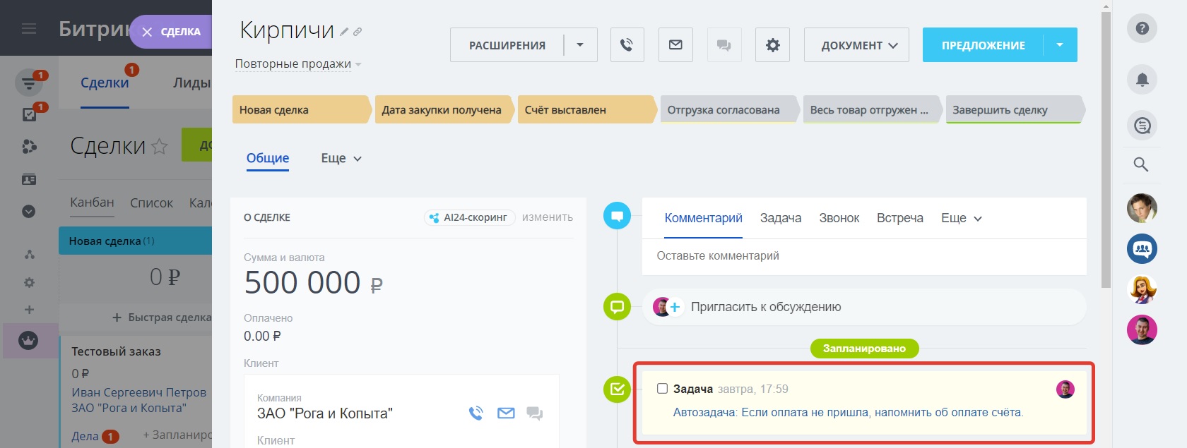 - Помнит о дебиторке. Даже когда клиенту отдали заказ, CRM-система указывает менеджеру, что с данного клиента нужно получить оплату за товар.