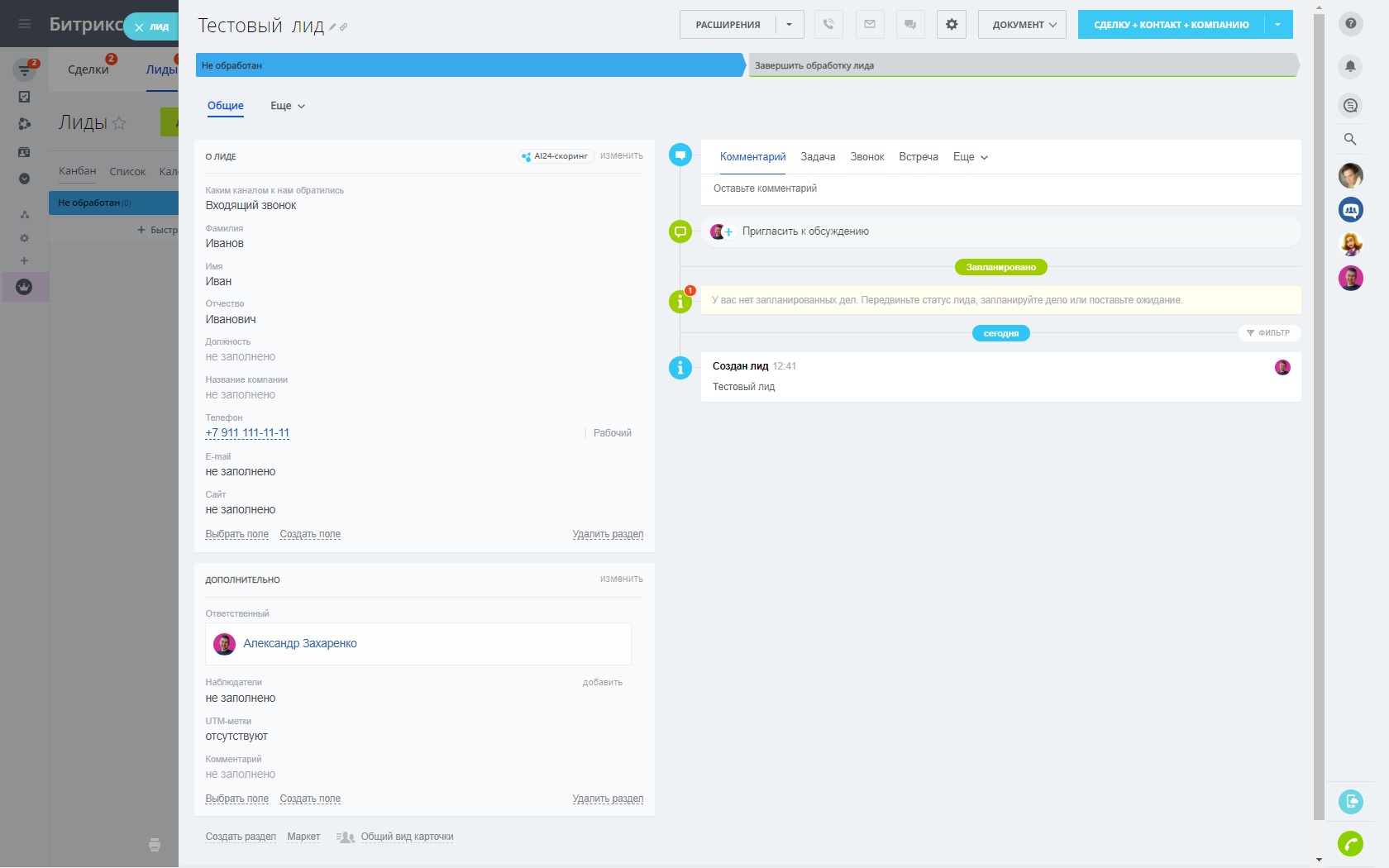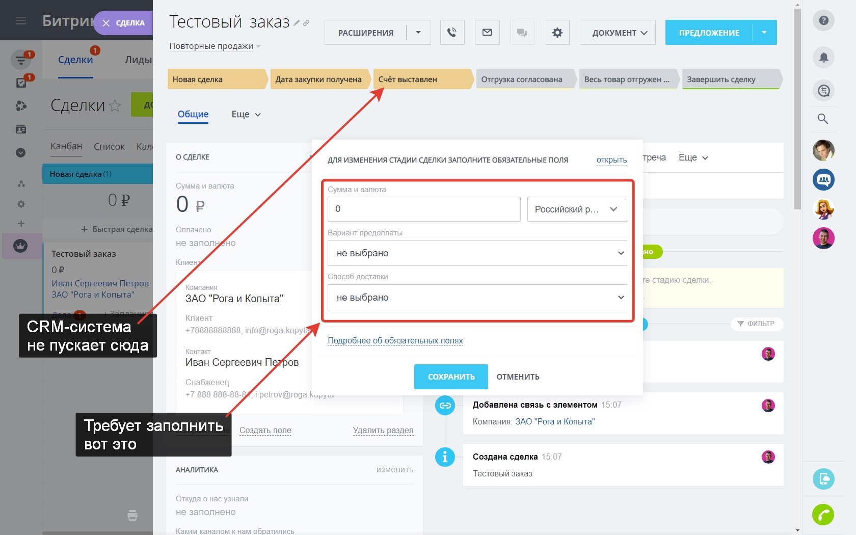 - обязательность заполнения полей, чтобы менеджеры не забыли занести нужные данные.