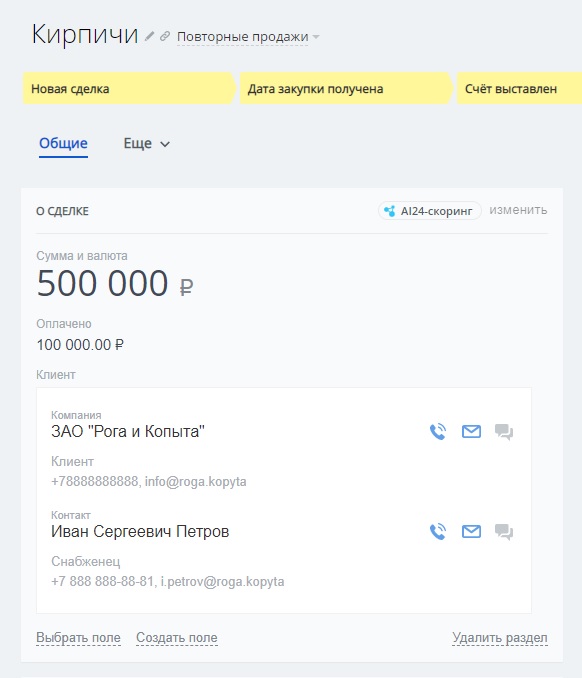 - Помнит о дебиторке. Даже когда клиенту отдали заказ, CRM-система указывает менеджеру, что с данного клиента нужно получить оплату за товар.