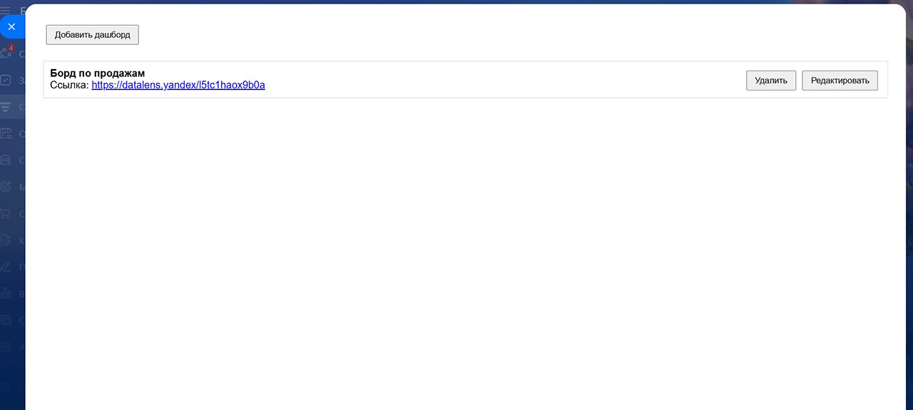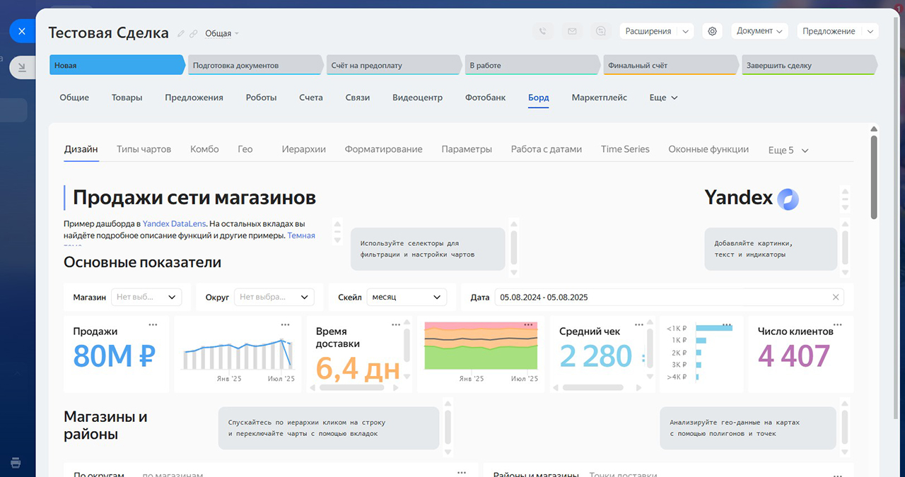Дашборд Yandex DataLens во вкладке карточки CRM и Смарт-процесса