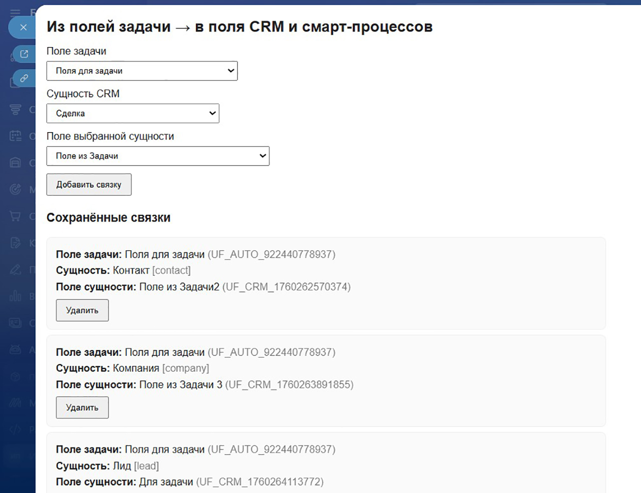 Большинство задач, которые ставятся в Битрикс24, связаны с другими элементами. Это могут быть карточки CRM (лиды, сделки, контакты, компании) и смарт-процессы. Иногда – сразу несколько связанных элементов.