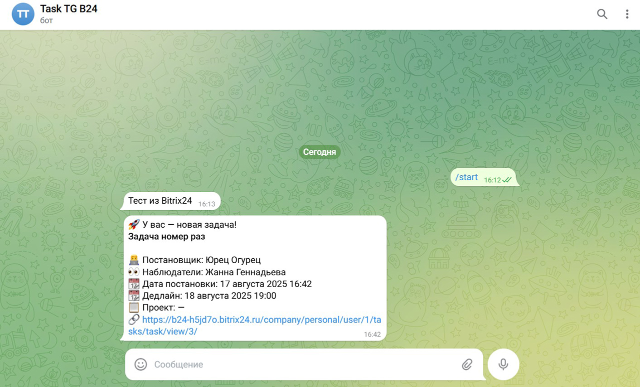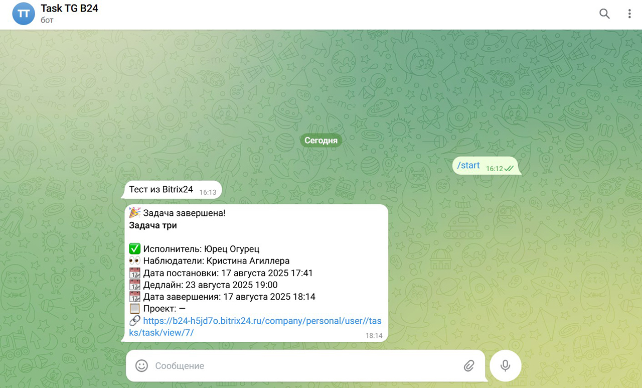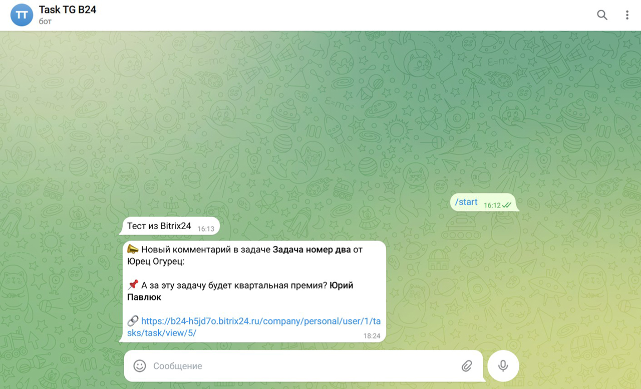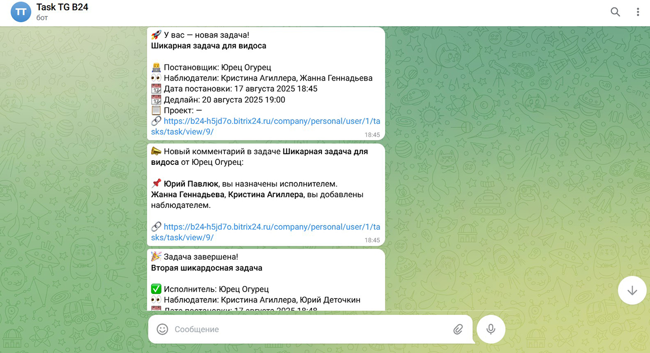 Штатные уведомления по задачам в Битрикс24 (“Колокольчик”, мобильные пуши и email) не всегда удобны.