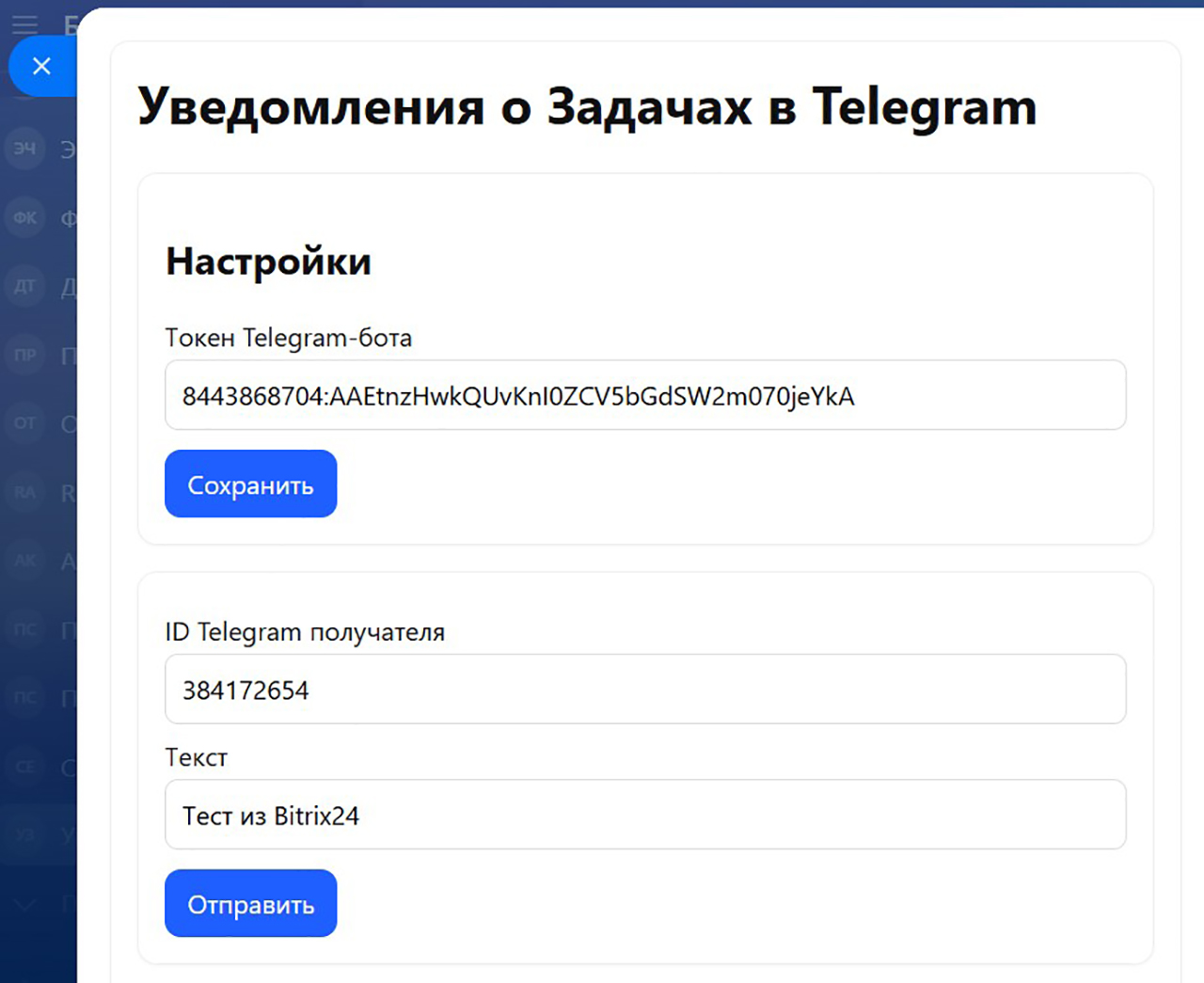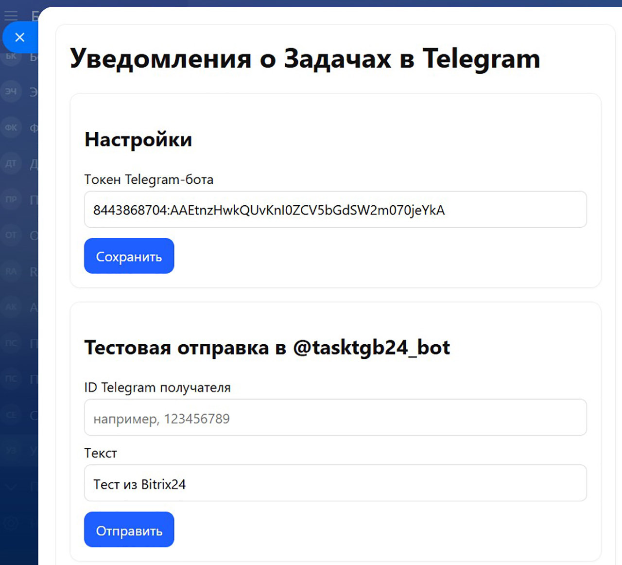 Добавьте токен вашего Телеграм-бота.