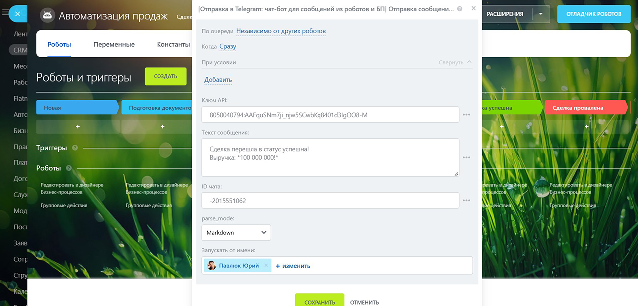 Отправка в Telegram: чат-бот для сообщений из роботов и БП