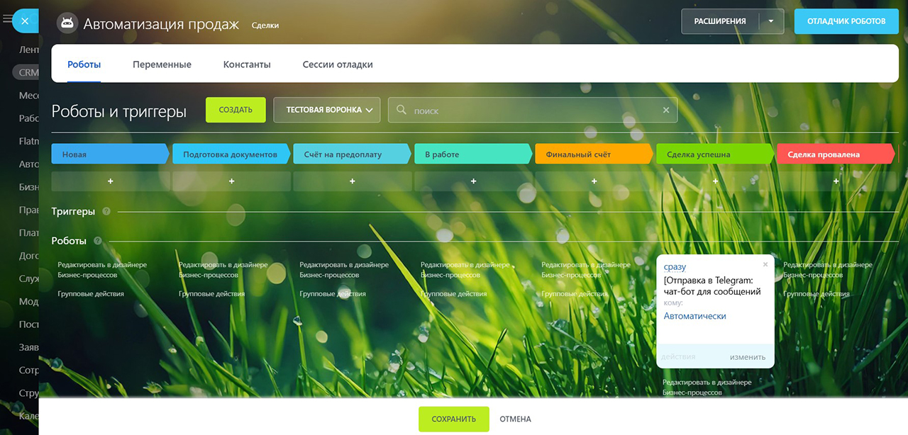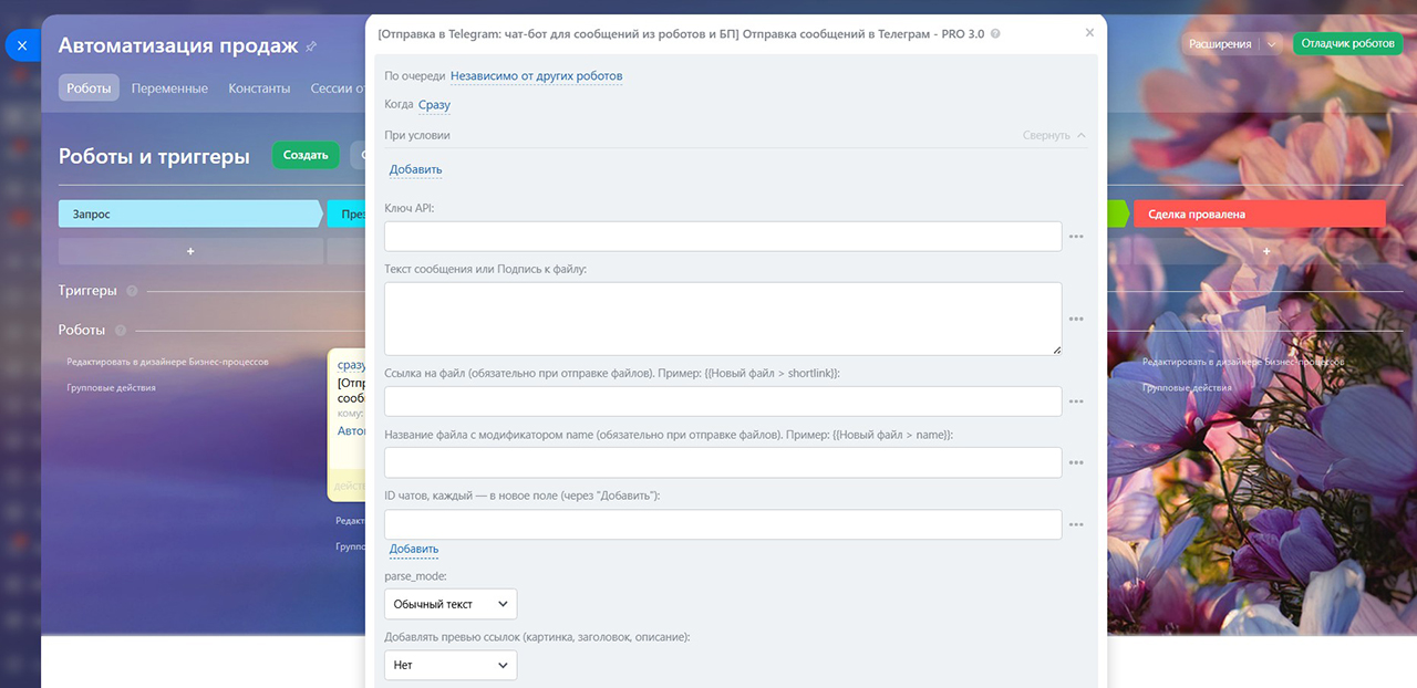 2. После установки вам будет доступны простой и PRO роботы (для всех платных тарифов) и активити (для тарифов не ниже Профессионального).