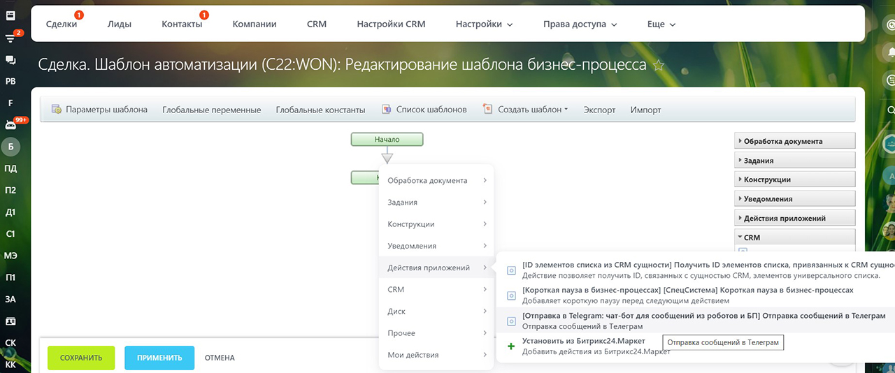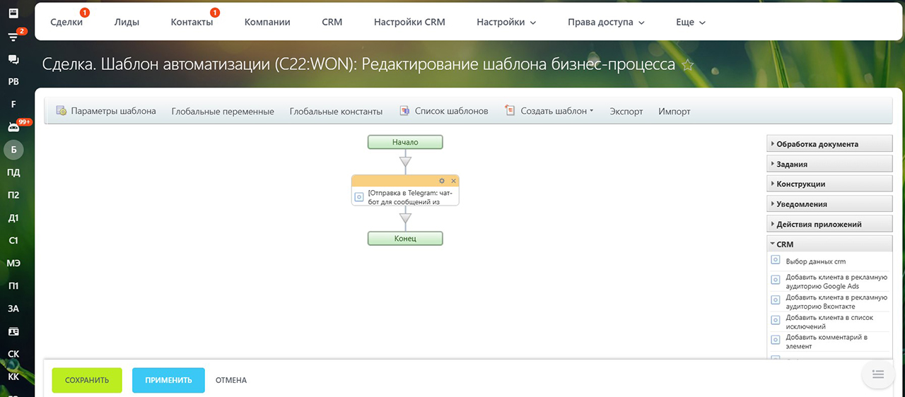 3. Вставьте чат-бот в необходимое место в Роботах или Дизайнере бизнес-процессов.