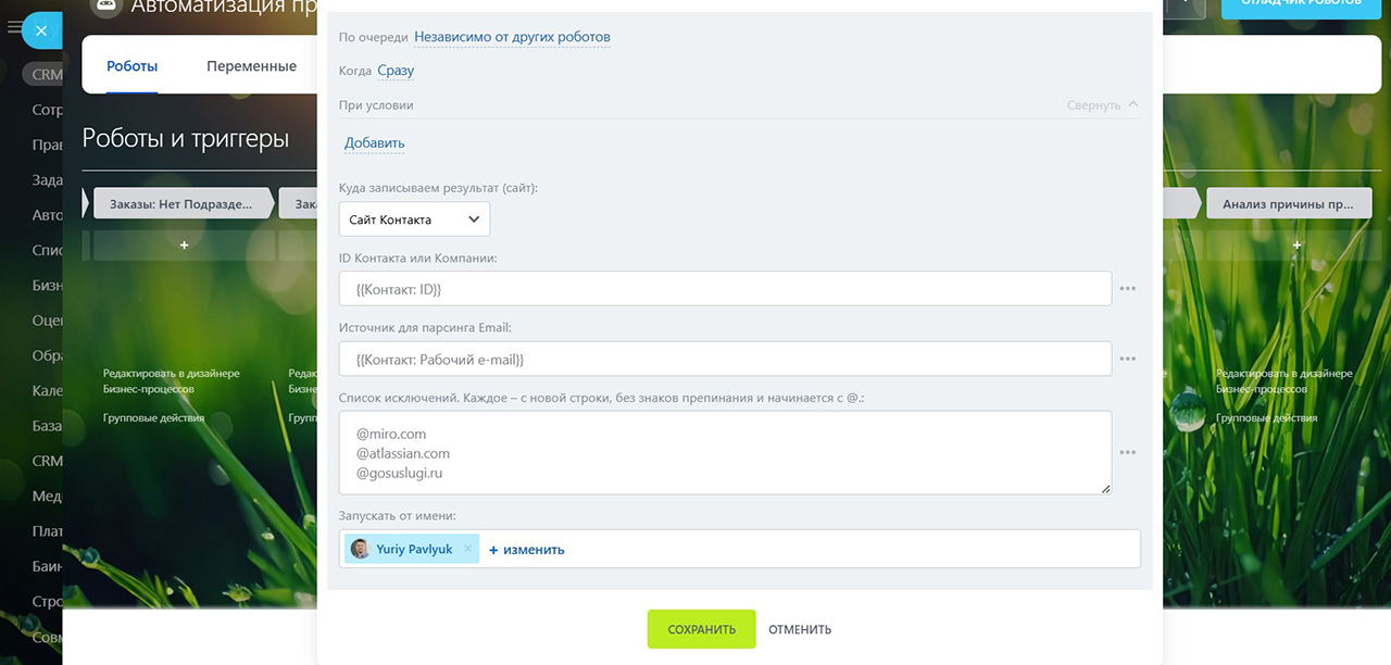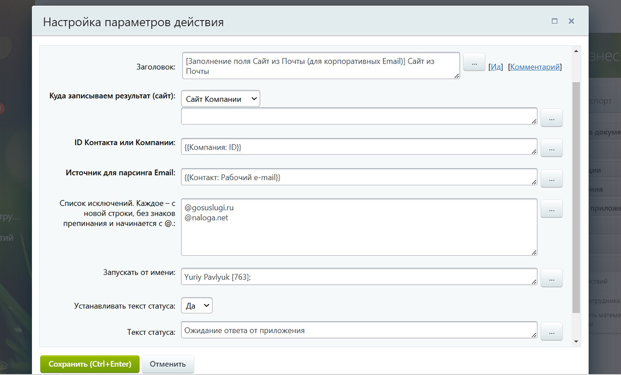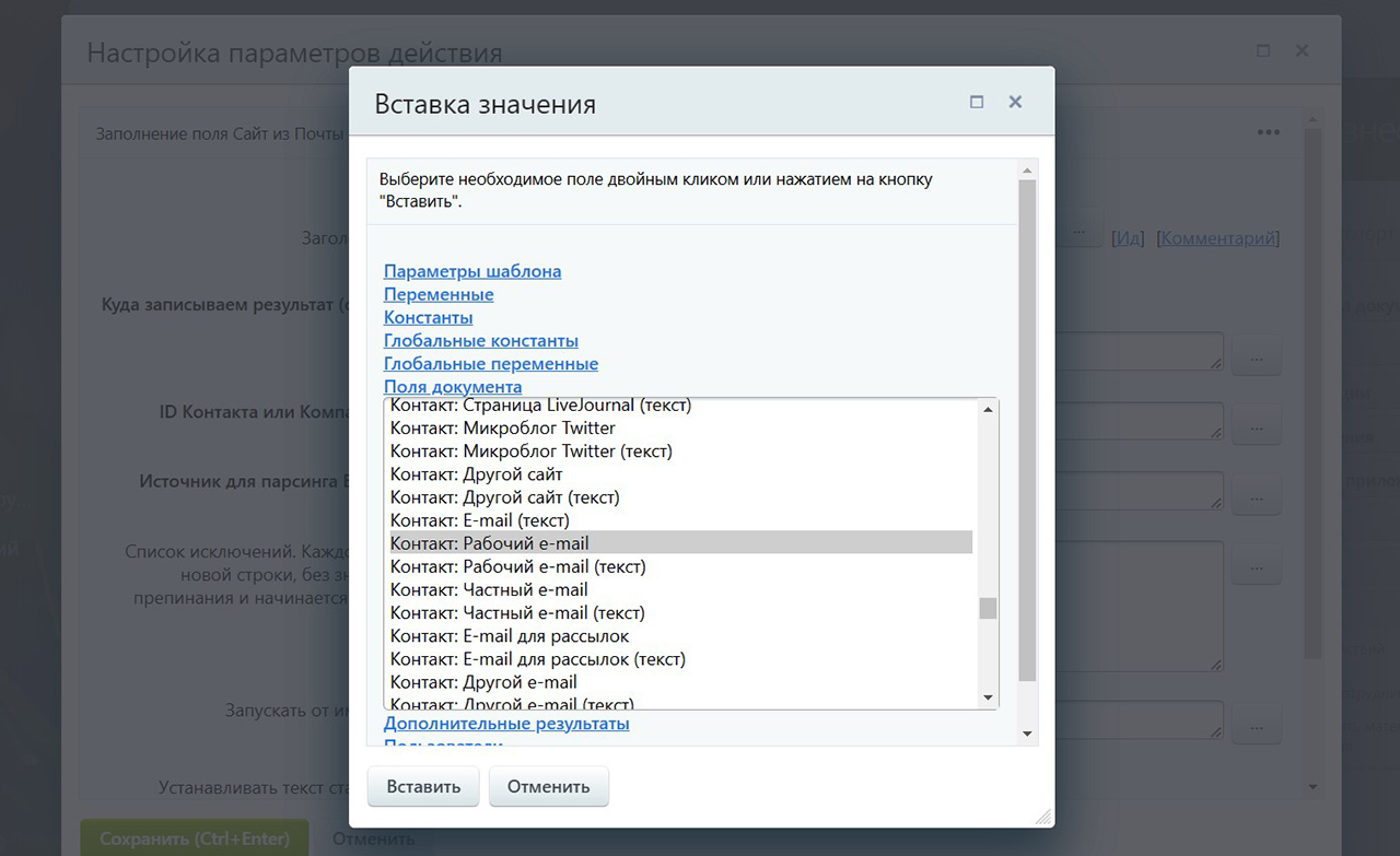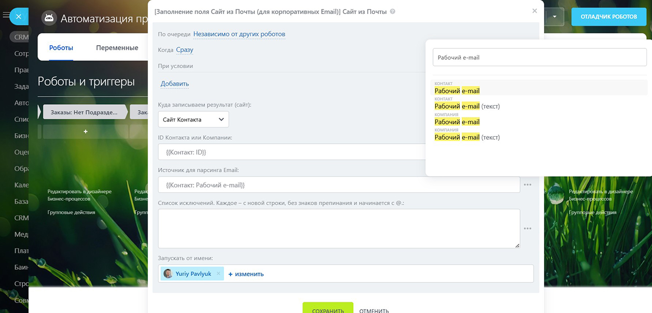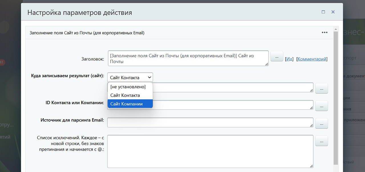 Парсер адресов Email и автозаполнение полей в Контактах, Компаниях и других сущностях (с учетом исключений)