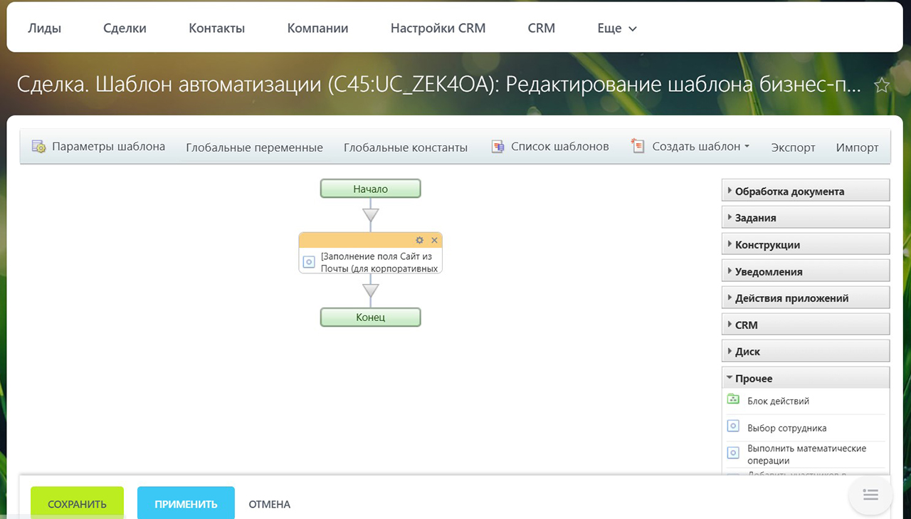 А с помощью умных сценариев можно переработать всю имеющуюся базу Контактов или Компаний и заполнить в них поля Сайт.