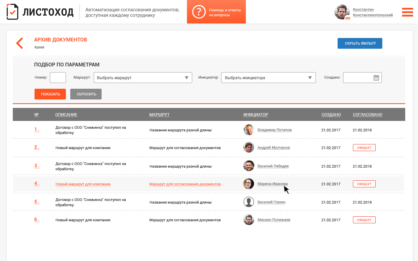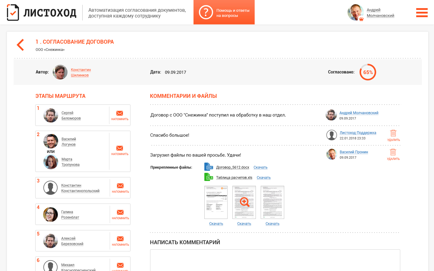 Листоход - согласование документов