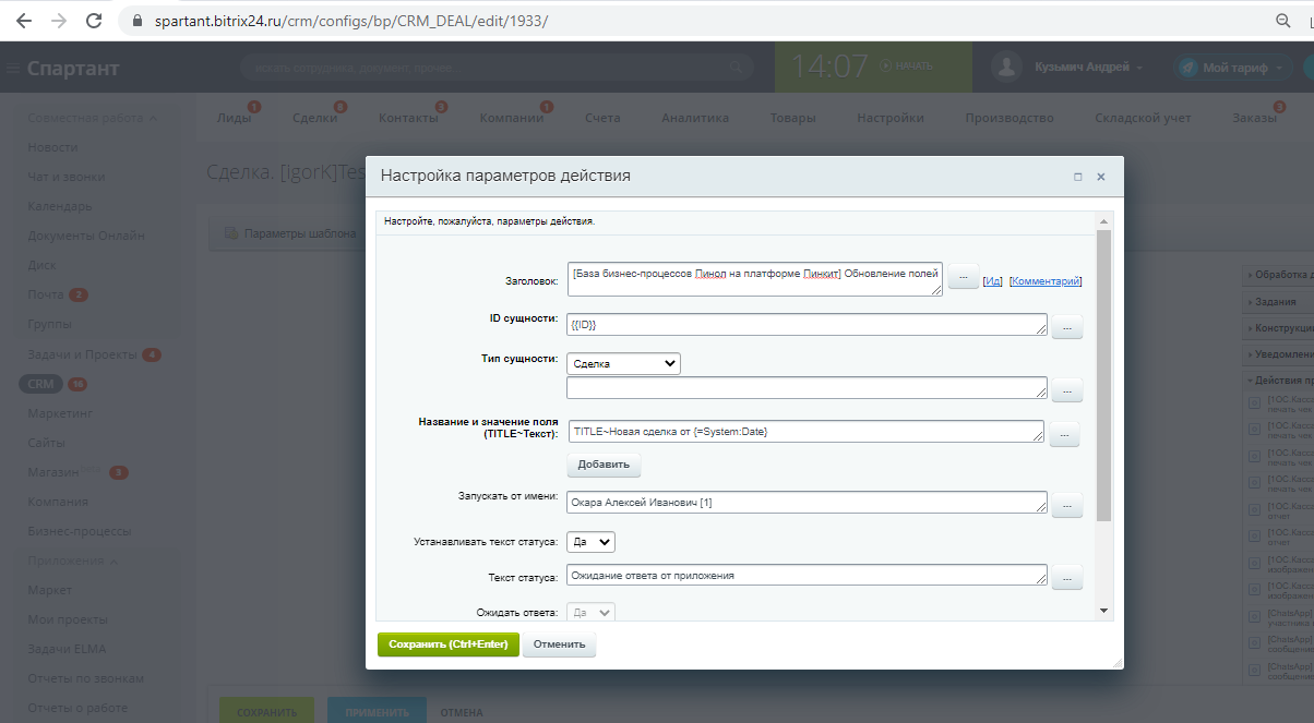 Данное активити на платформе Пинкит помогает автоматически обновлять значение любого поля таких сущностей, как:
