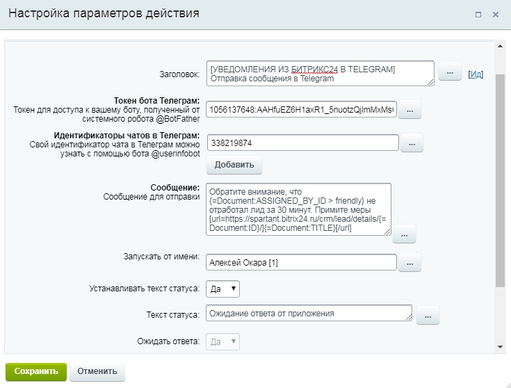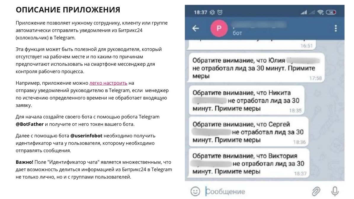 Уведомления из Битрикс24 в Telegram через Пинкит