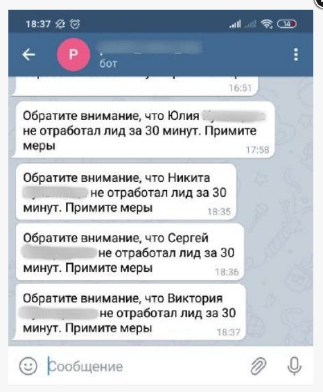 Например, приложение можно легко настроить на отправку уведомлений руководителю в Telegram, если менеджер по истечению определенного времени не обработает входящую заявку. Или настройте уведомления для заказчика, чтобы он понимал, как движется его сделка по стадиям (например: "взято в работу", "заказ собирается на складе", "готово к отправке", "отправлено, ожидаем оплату" и т.д.).