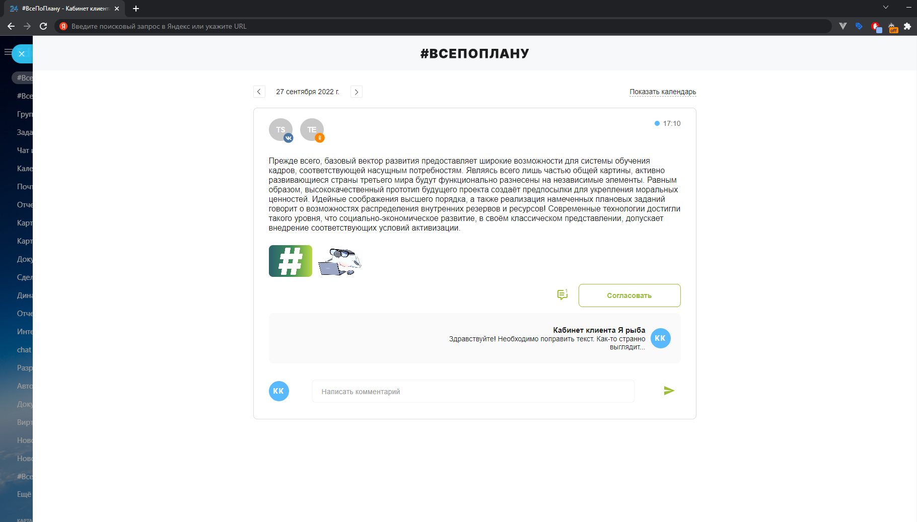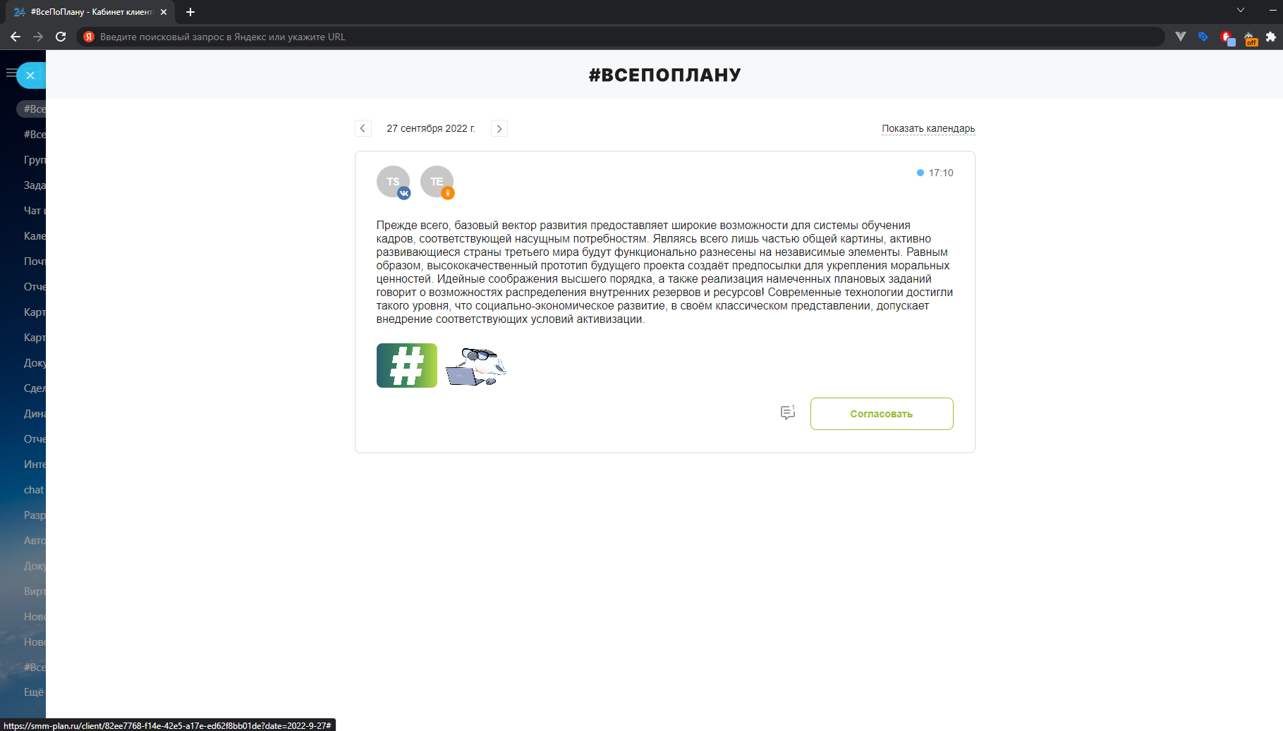 Приложение предоставляет доступ к клиентской части сервиса #ВсеПоПлану для согласования публикаций клиентом.