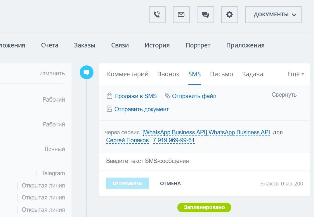 Отправка сообщений через интерфейсы СМС и CRM-маркетинга.