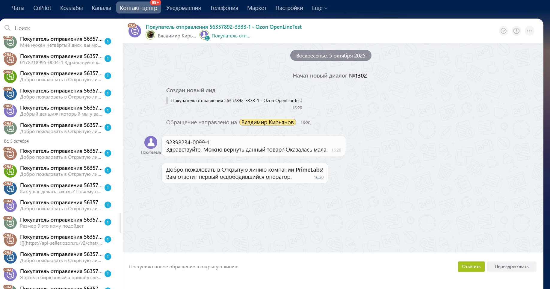 Ozon чаты для Битрикс 24 позволяют общаться с покупателями в Битрикс 24.