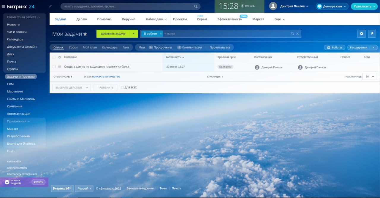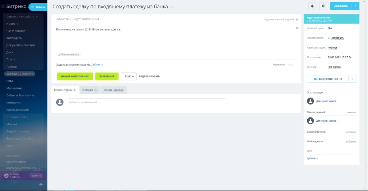 — Заводи задачи на создание новых сделок и выставление счетов.
