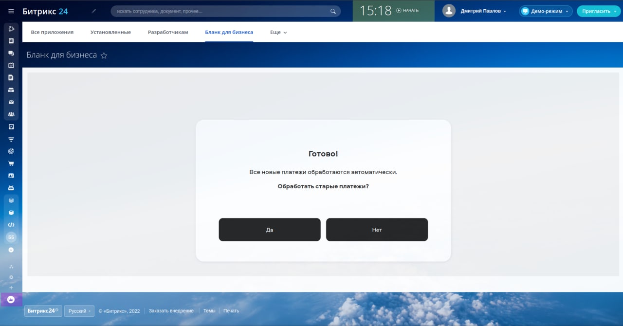 — Достаточно авторизоваться в Битрикс24 и через вкладку «Приложения» подключиться к Бланку.