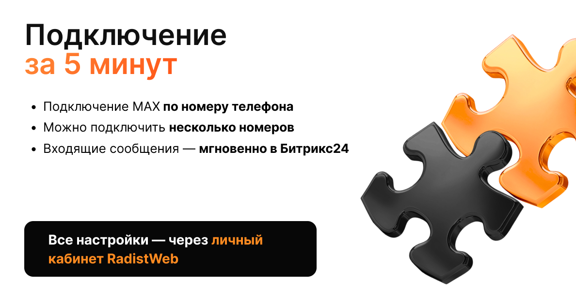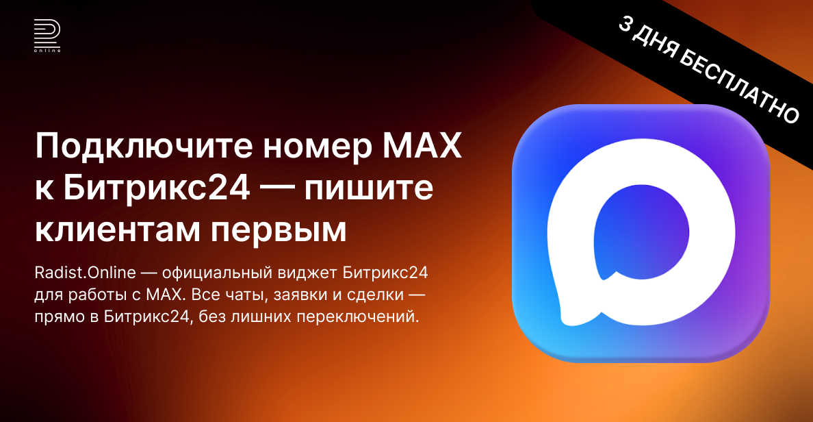 Интеграция Radist.Online с MAX помогает выстроить диалоги с клиентами прямо в Битрикс24 и сосредоточить всю коммуникацию в одном месте. Менеджеры меньше тратят времени на переключения, а руководители получают полный контроль над процессами отдела продаж.