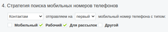 - Настройка стратегии для поиска мобильных номеров телефонов у сущностей CRM.