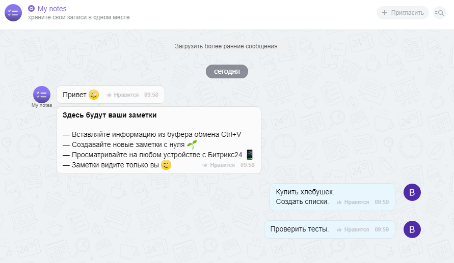 Мои заметки — новый блок в списке чатов Битрикс24, где вы можете хранить свои записи в одном месте.