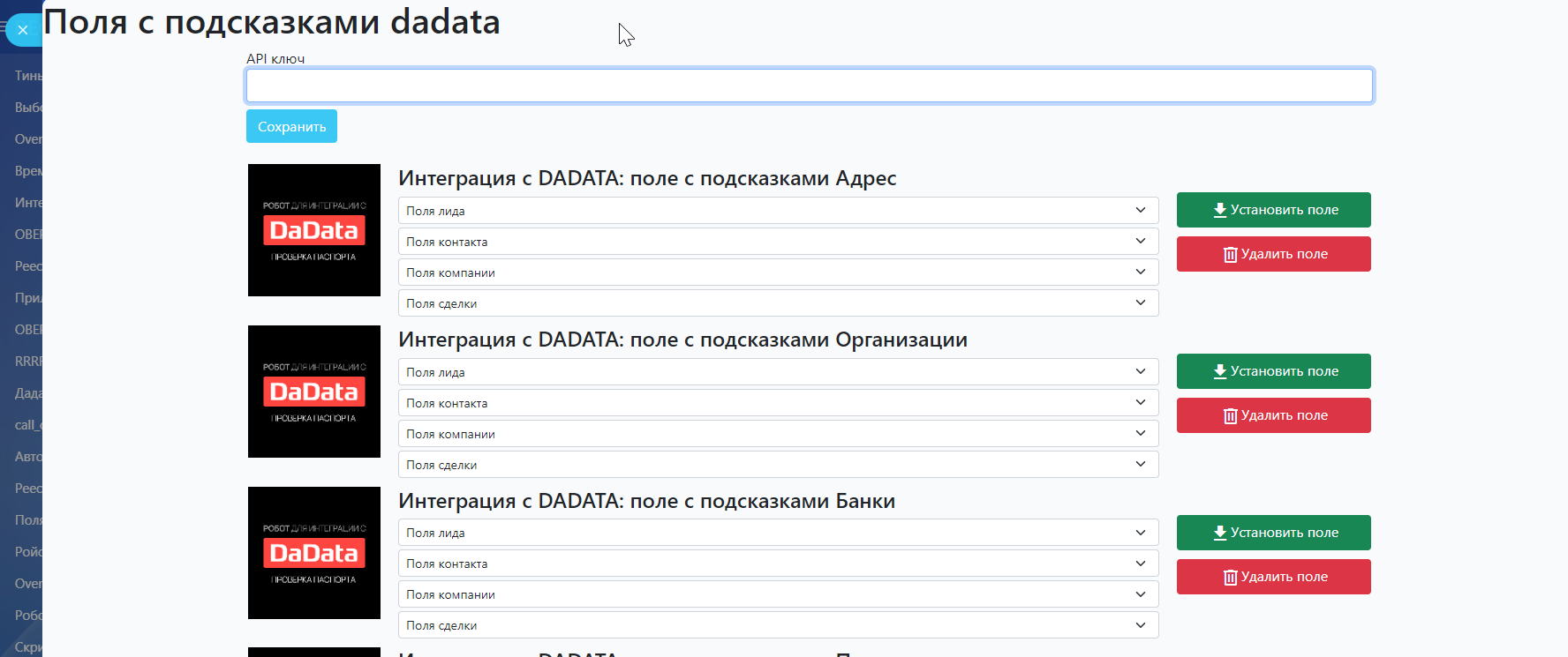 Интеграция с DADATA: Поля с подсказками в карточках CRM