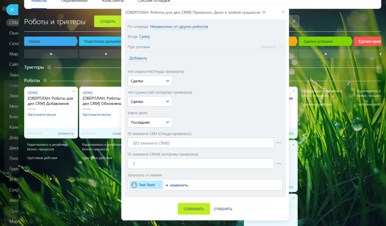 Коллекция роботов / активити бизнес-процессов, которые позволяют работать с делами CRM
